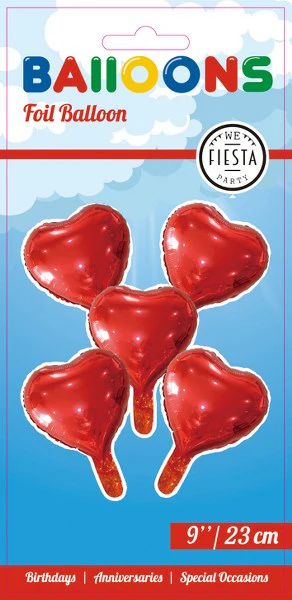 5 x Rode Folieballonnen met rietjes om de ballonnen op te blazen. De hartballonnen zijn 23 cm groot en uiteraard ook geschikt voor gebruik met helium. Prachtige ballonnen voor een feestje zoals een bruiloft, Valentijnsdag, verjaardag