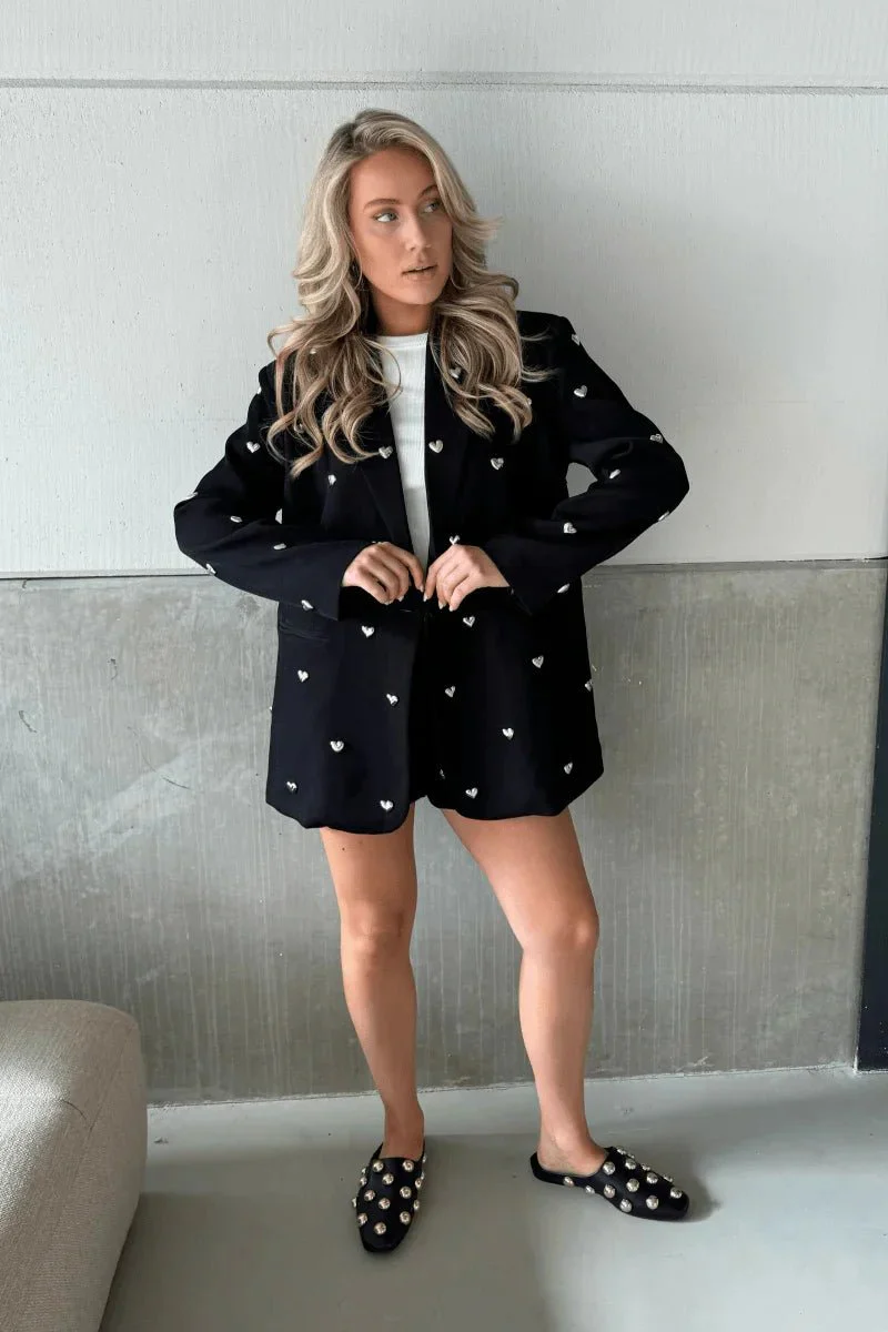 LouLou Zwarte Blazer met Hartjes – Tijdloze Elegantie met een Speelse Touch