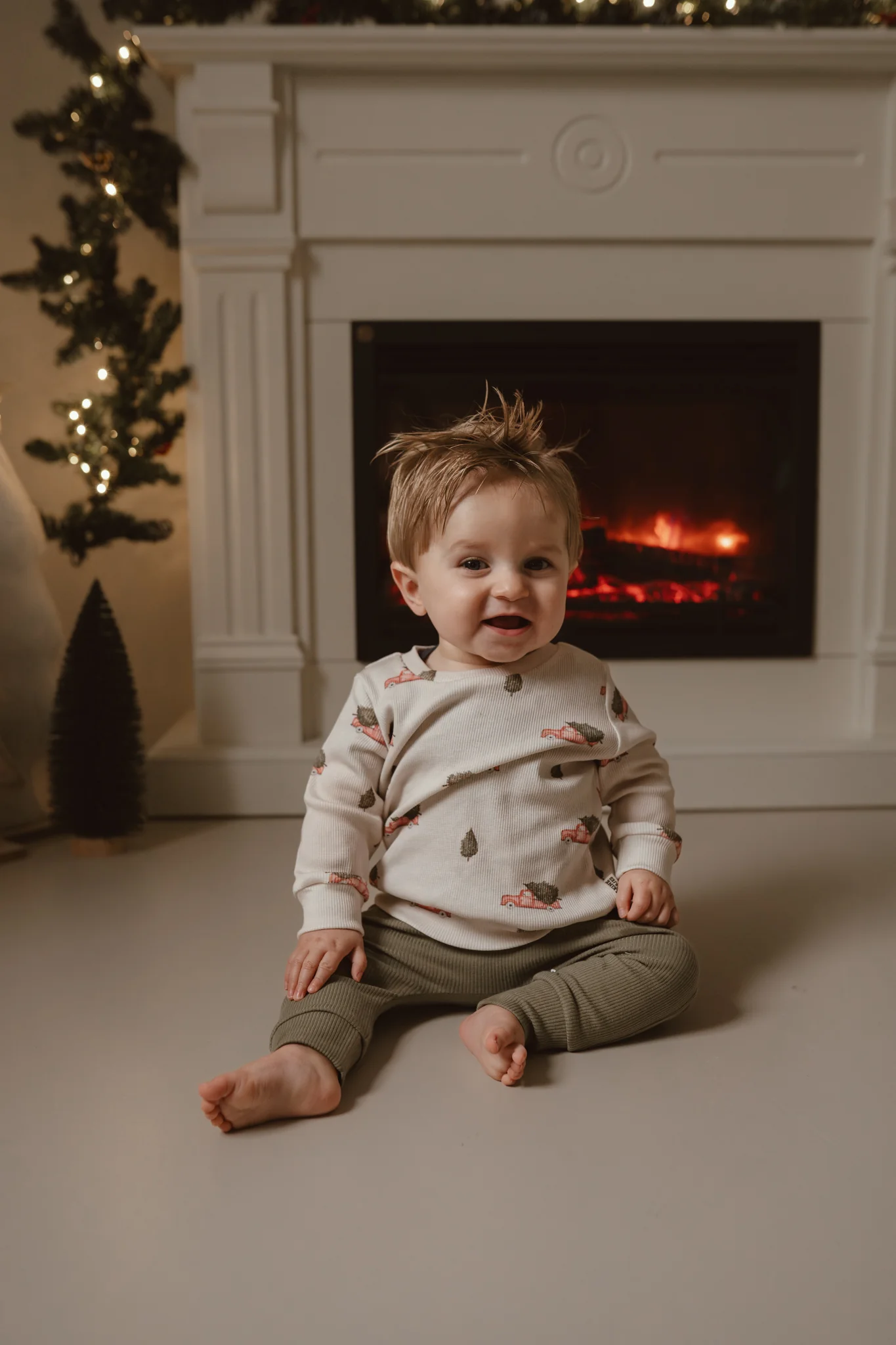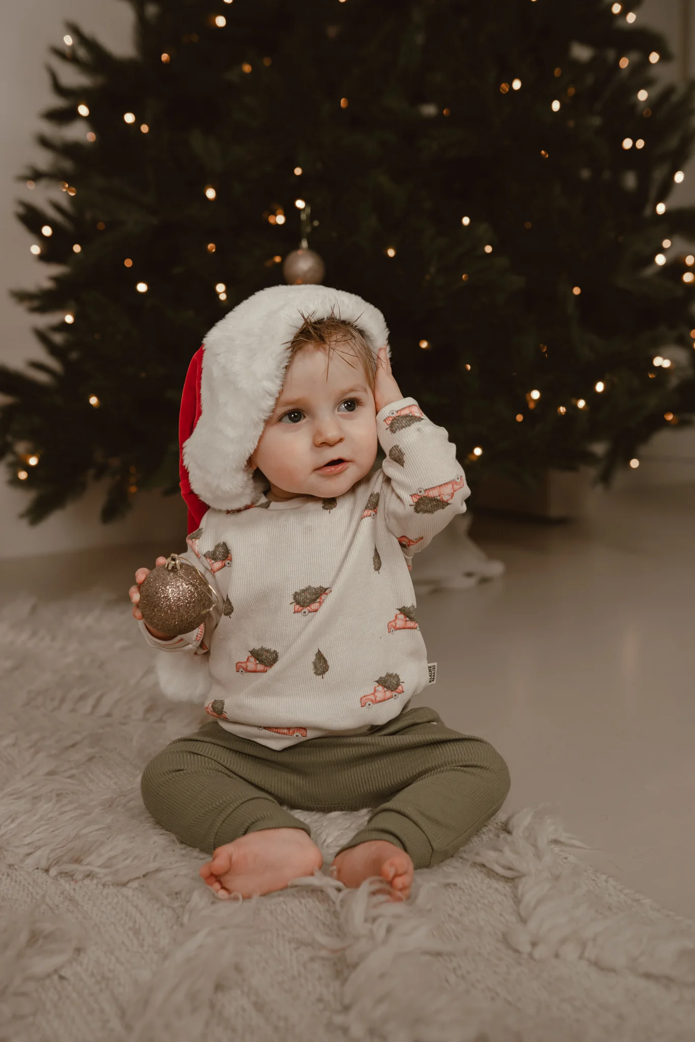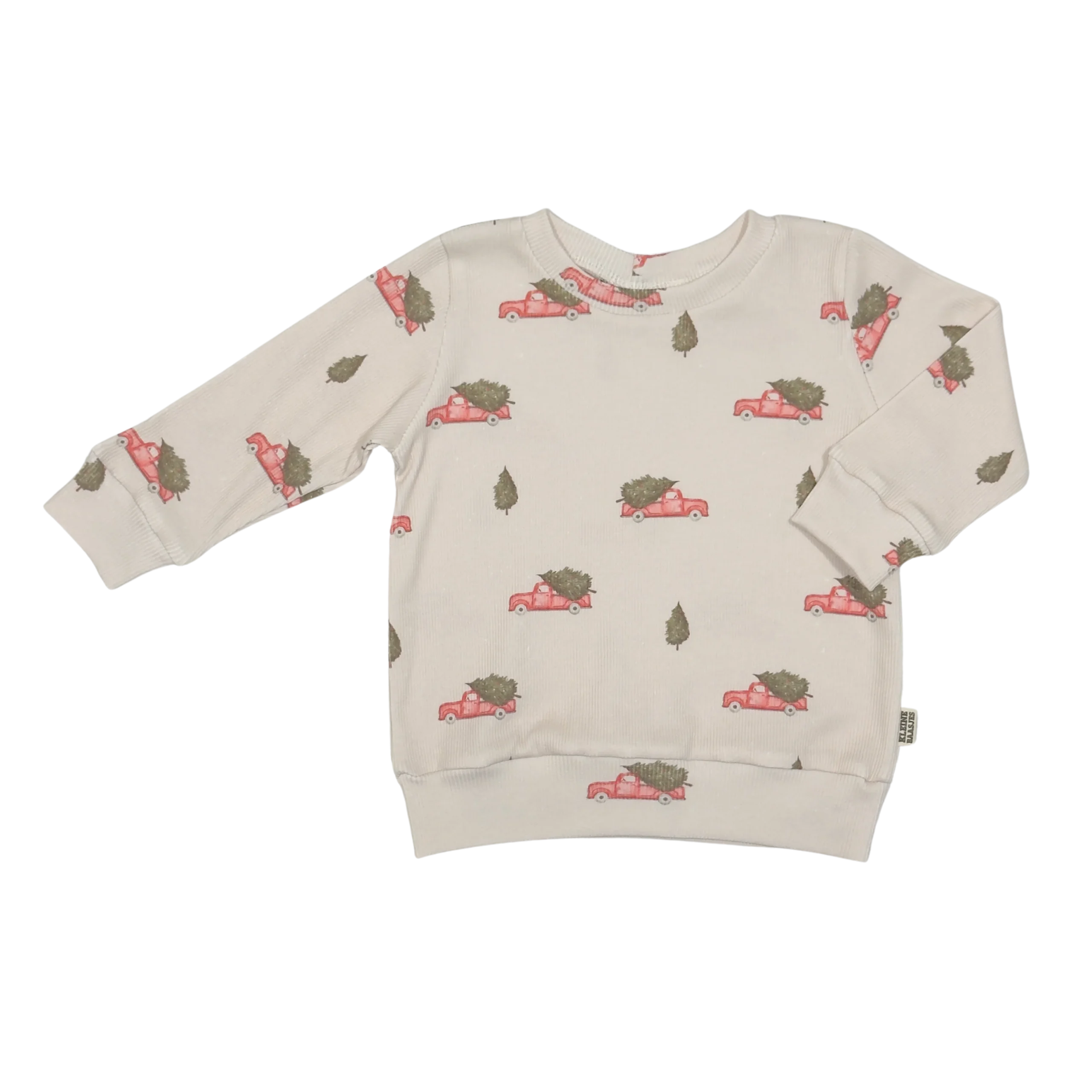 Op de print van de baby en kids sweater zie je vrolijke rode auto’s met daarop een kerstboom. Als je heel goed kijkt dan zie je dat het sneeuwt met heel kleine witte stipjes op de creme kleurige trui. Met deze kersttrui voor je kleintje kom je helemaal in de kerstsfeer!