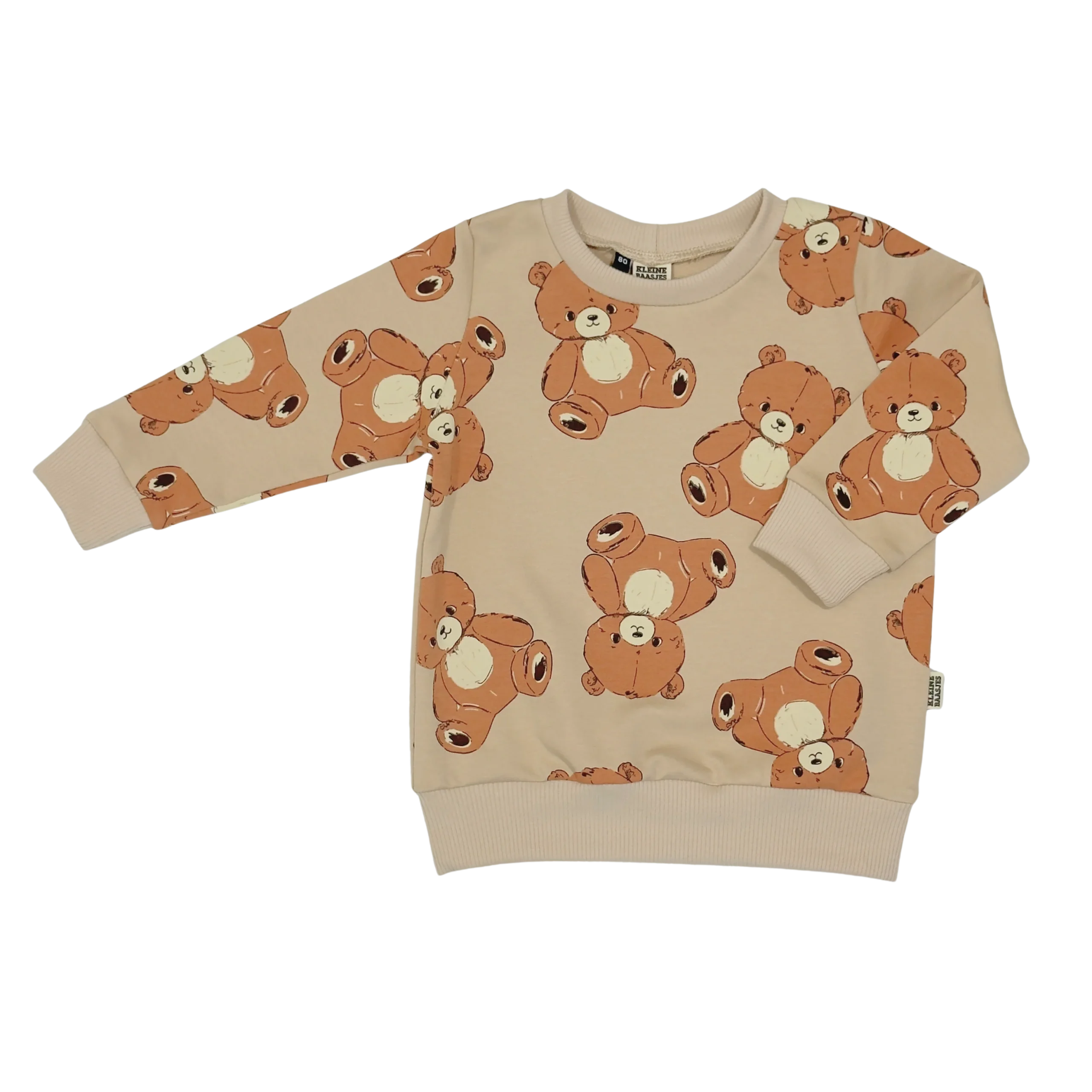 Lieve sweater van heel zacht sweat katoen in de kleur beige met een print van lieve teddyberen in de kleur bruin en creme.