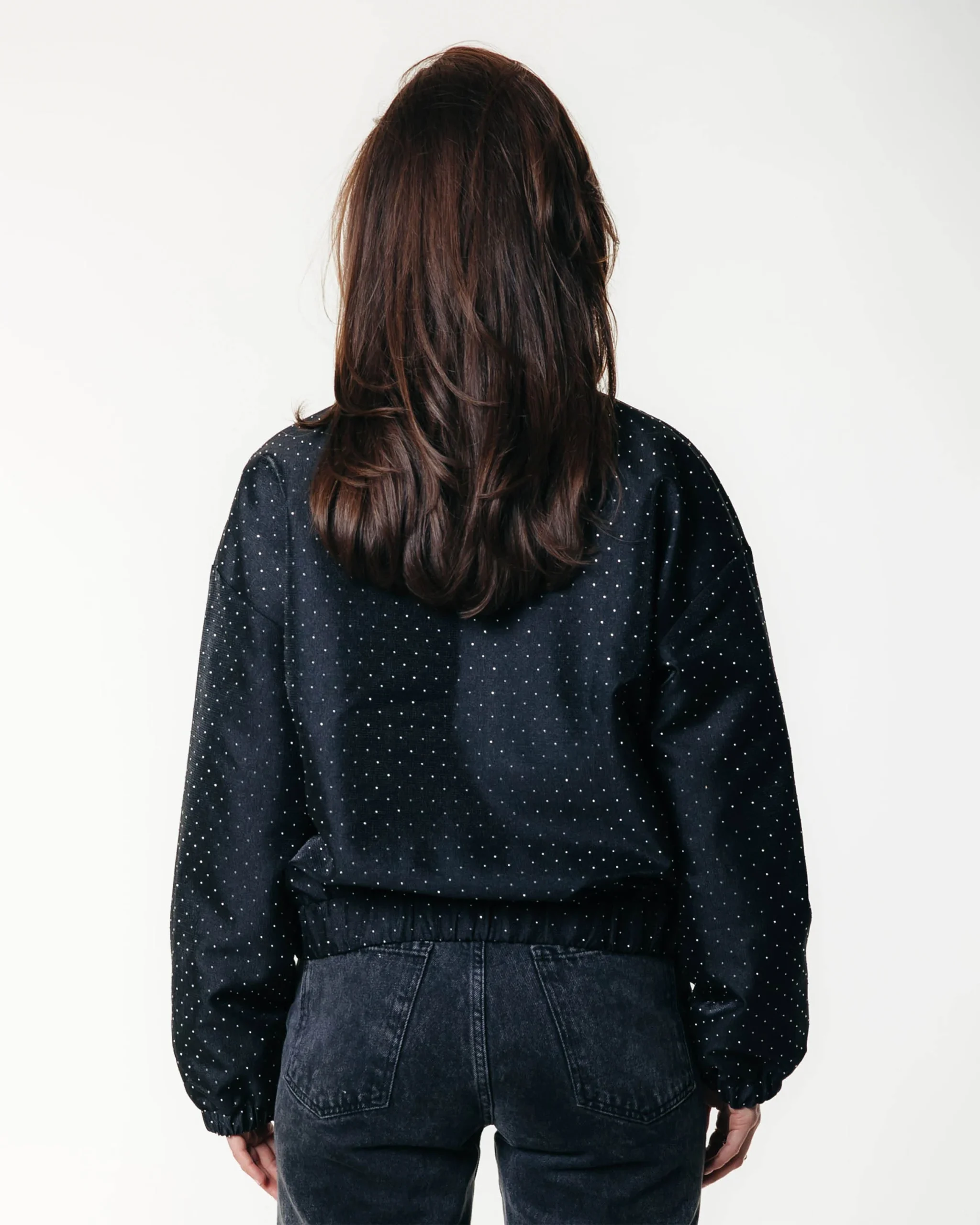Voel je stijlvol en zelfverzekerd in de Bente Studded Bomber Jacket. Deze bomber voegt een edgy touch toe aan elke outfit met zijn subtiele studs en verfijnde glans. Perfect voor een avondje uit of een casual dag in de stad. Gemaakt van zacht materiaal, biedt deze jas comfort en stijl gecombineerd. De elastische zoom en manchetten zorgen voor een flatterende pasvorm, terwijl de diepe zwarte kleur moeiteloos te combineren is met je garderobe. Kies voor deze bomber en breng jouw outfit naar een hoger niveau.