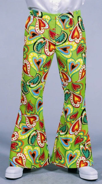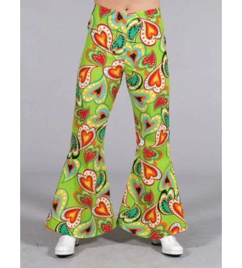 Fraaie jaren 60 en 70 broek met wijde pijpen en Woodstock hartjes motief.