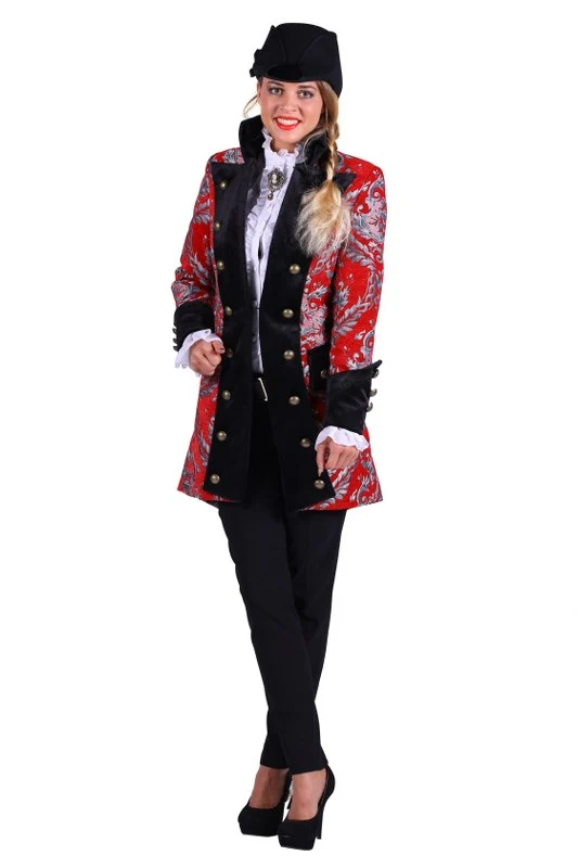De zeer fraaie Dames Carnavalsjas Brokaat is een perfecte jas voor Carnaval, volledig gevoerd, erg mooi afgewerkt en een luxe uitstraling. Het is een getailleerd damesmodel met grote knopen en steekzakken, kortom een fijne jas voor een super leuk Carnaval!