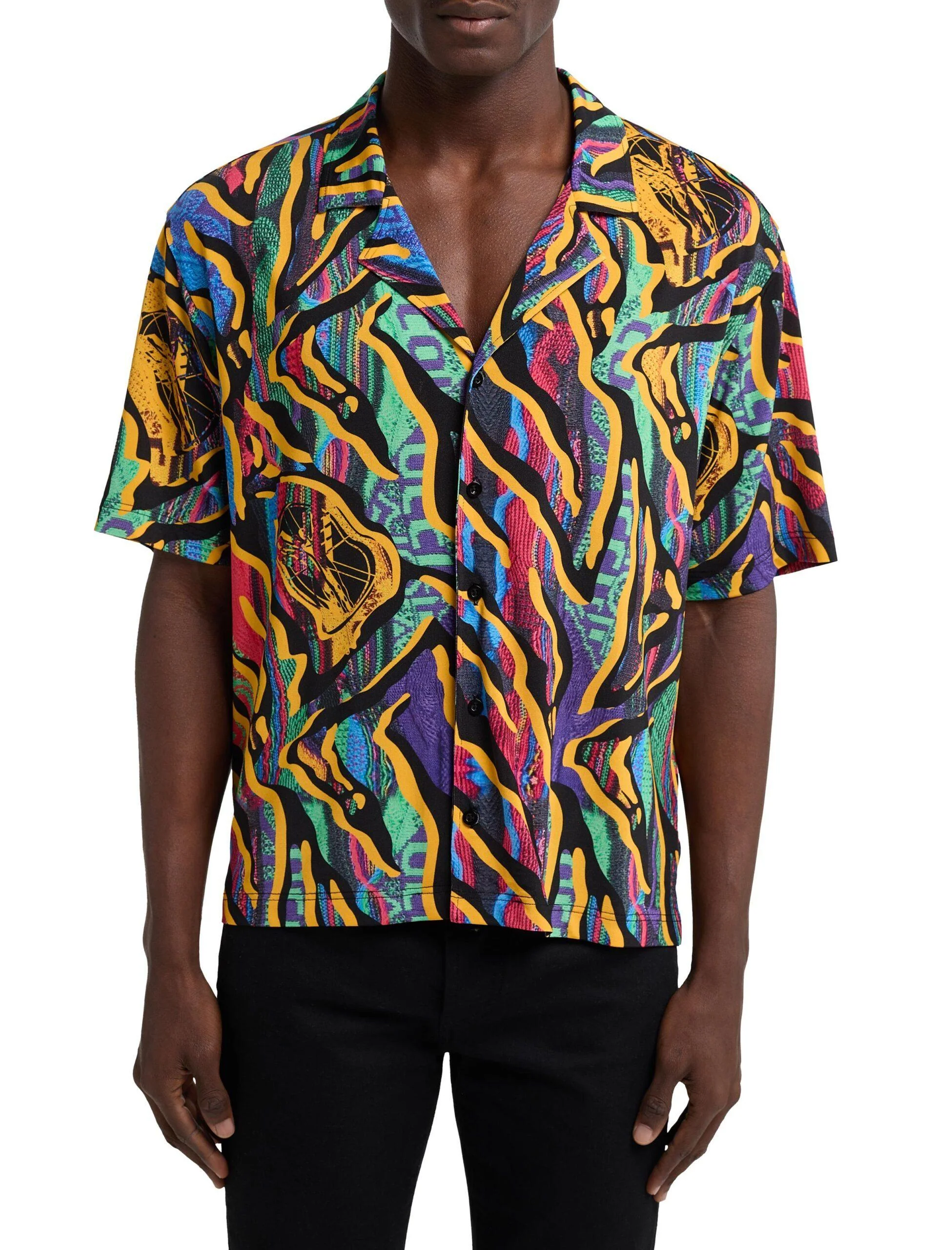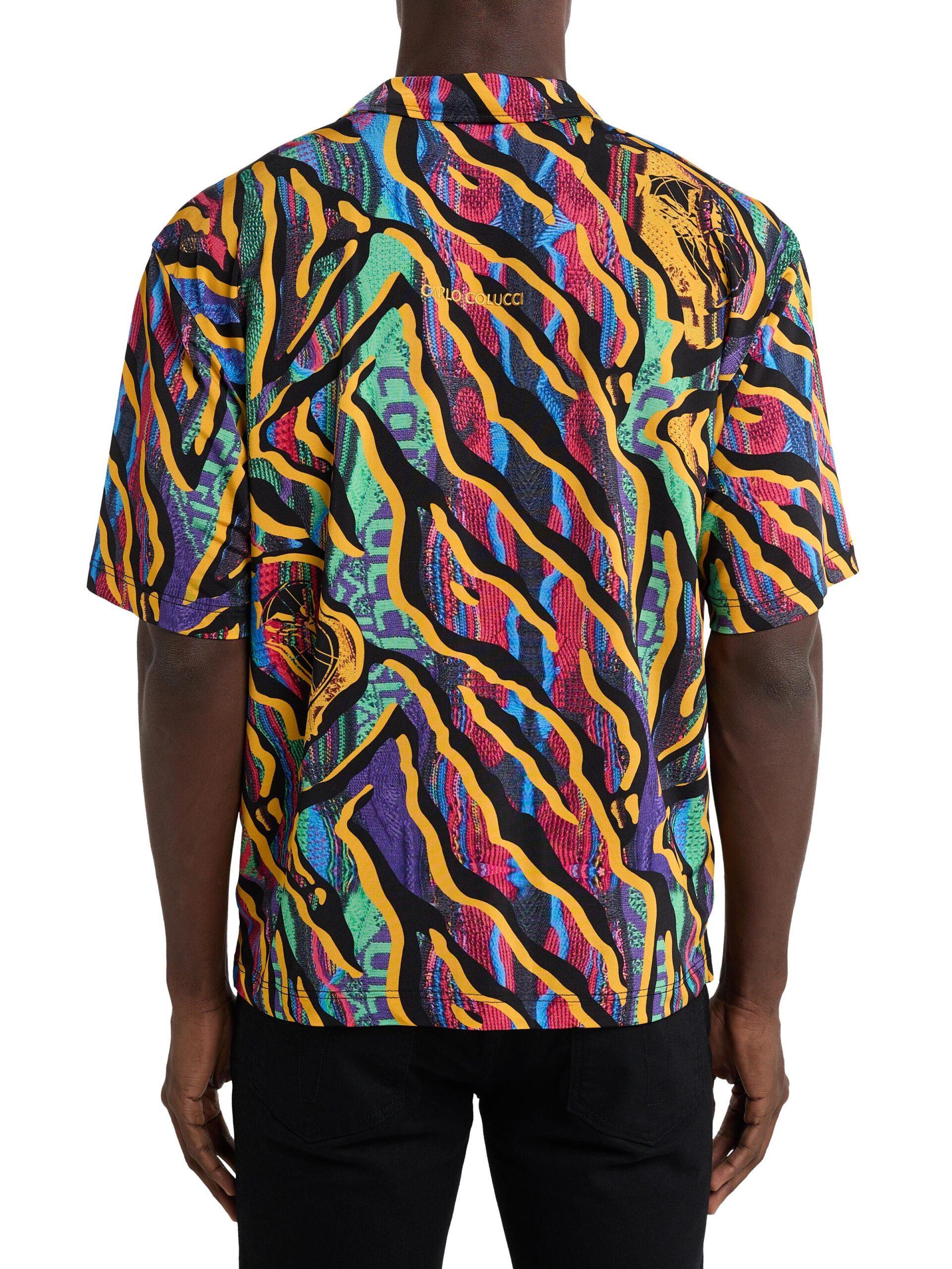 Carlo Colucci oversized Korte Mouwen overhemd met print Zwart Multicolor