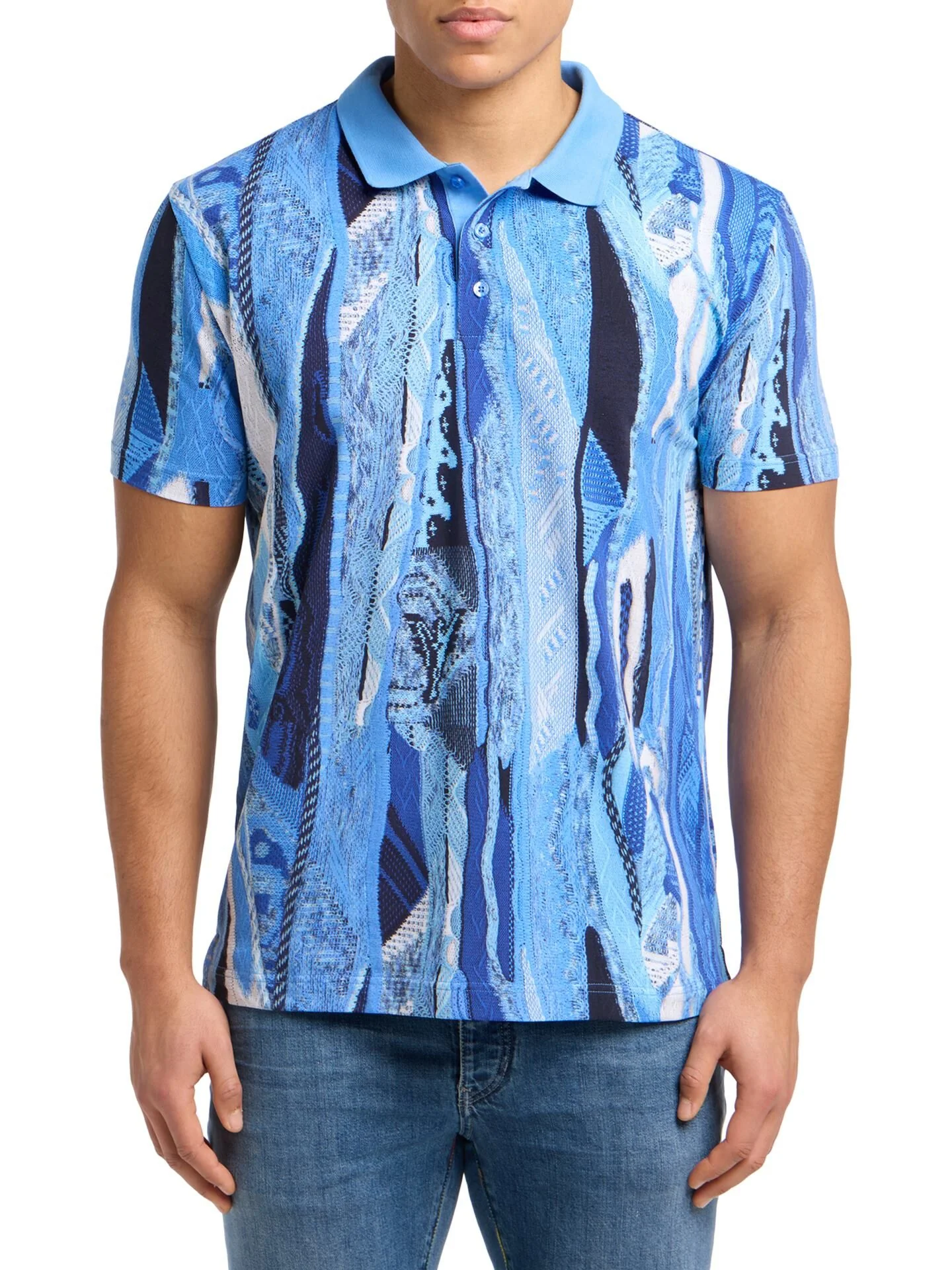 CARLO COLUCCI POLOSHIRT MET GEBREIDE PRINT BLAUW.