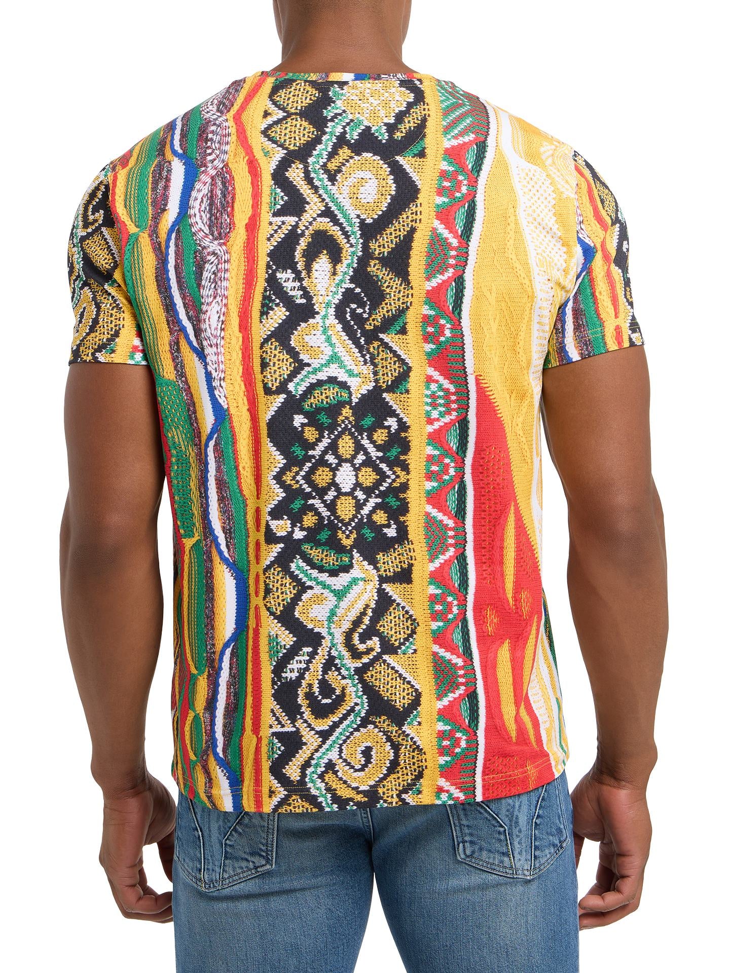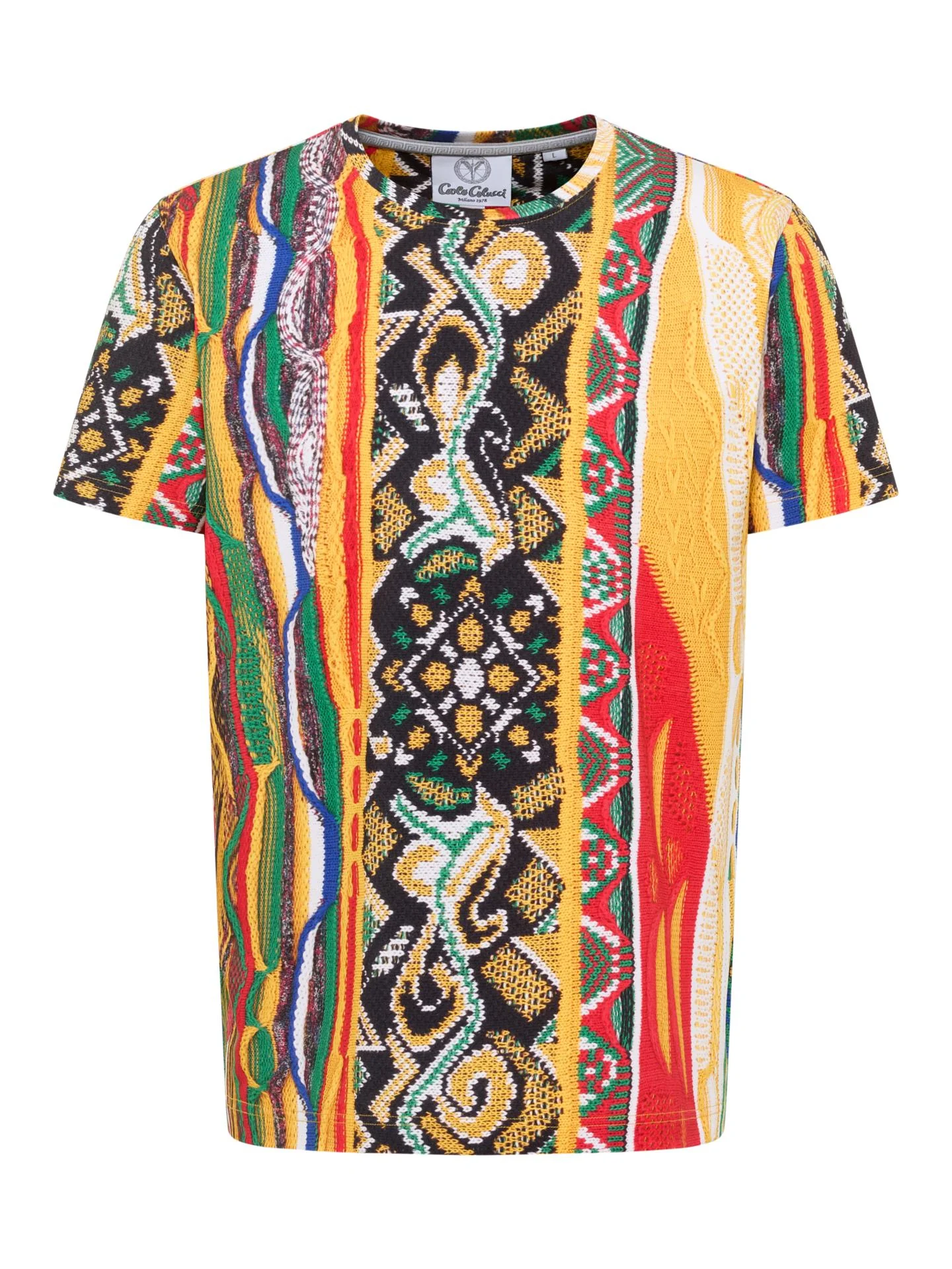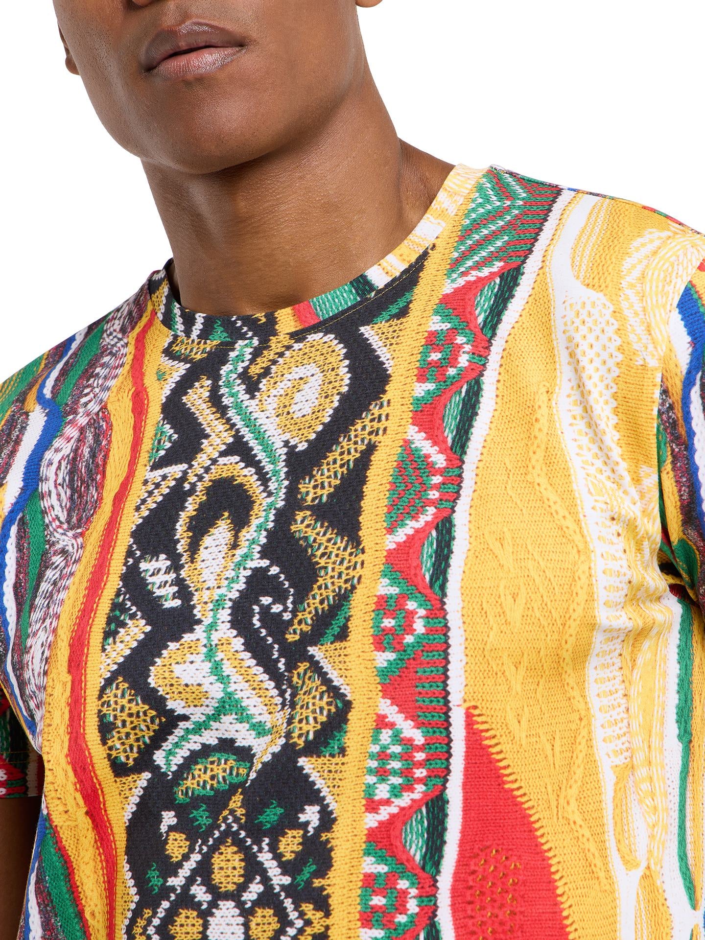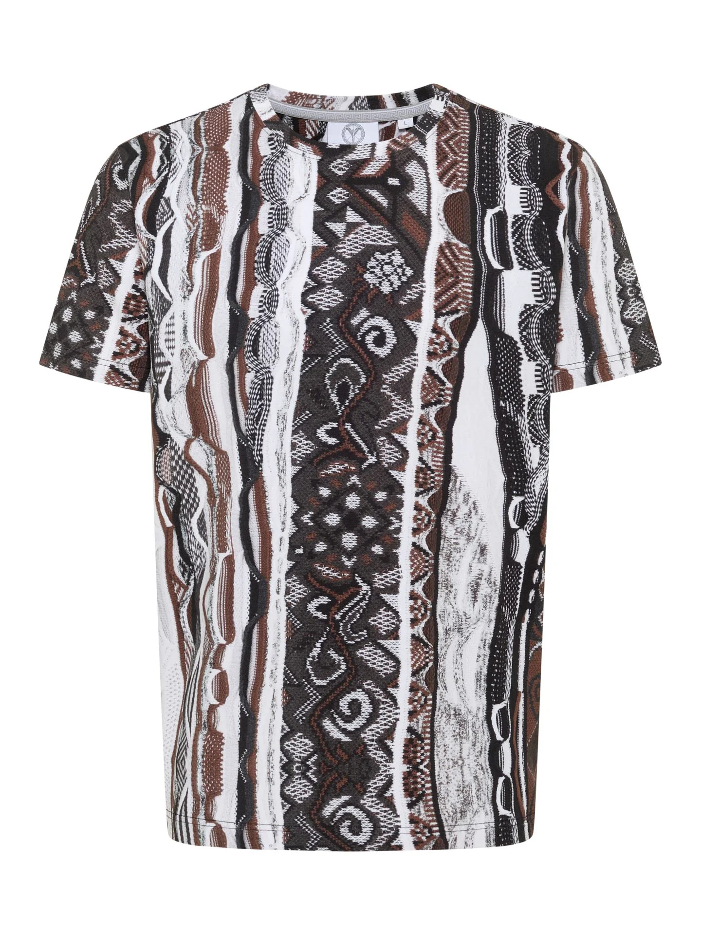 Het Knitprint T-shirt combineert moderne stijl met het traditionele gebreide patroon. Gemaakt van zachte, ademende stof, biedt het niet alleen een hoog comfortniveau, maar ook een buitengewone uitstraling. Het unieke ontwerp doet denken aan handgemaakte breipatronen die in het materiaal zijn verwerkt en geeft elke outfit een bijzonder tintje. Perfect voor een casual maar stijlvolle look in het dagelijks leven.