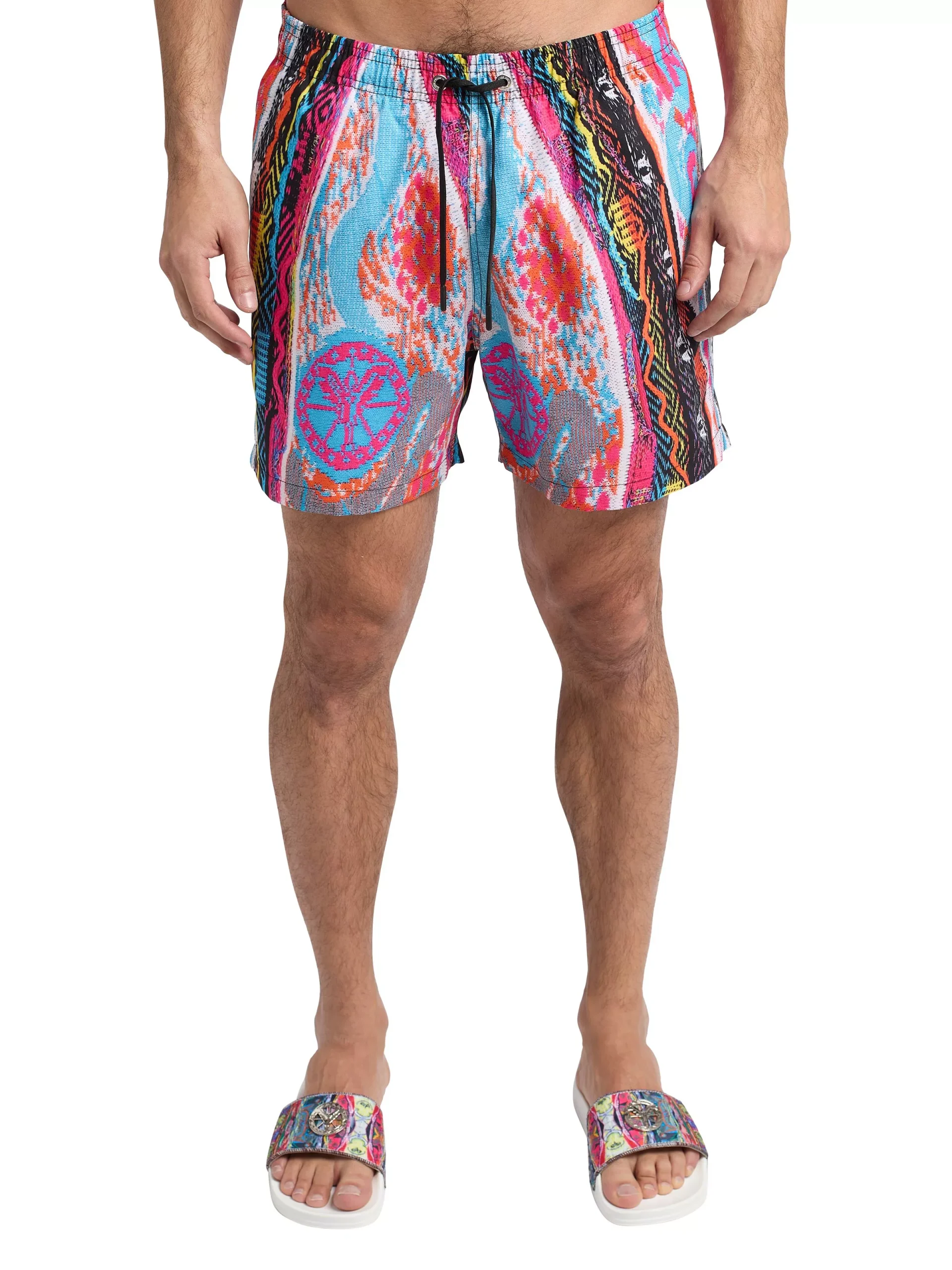 De Carlo Colucci zwemshort met gebreide print is een stijlvolle zwembroek in de kleuren wit en roze. De zwembroek heeft een unieke, gebreide print die zorgt voor een opvallende uitstraling. Hij is gemaakt van hoogwaardig materiaal en heeft een comfortabele pasvorm. Perfect voor een dagje aan het strand of bij het zwembad.