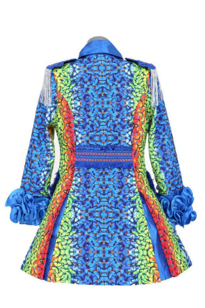 Voor de dames die op zoek zijn naar een unieke en opvallende outfit voor carnaval, introduceren wij onze prachtige vlinderjas of butterfly jas. Deze jas in blauw, groen en rood is voorzien van een schitterend vlinderpatroon.