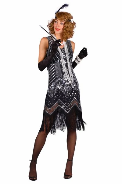 De charleston jurk Catherine is een zeer fraai gesneden Charleston jurk met zilveren pailletten in een perfecte luxe jaren 20 uitstraling. Deze jurk is de blikvanger tijdens een jaren 20 feestje of Maffia party. Het is ook de ideale jurk bij het Peaky Blinders thema. Deze jurk is fraai te combineren met een bruin of zwart bontjasje. Deze zijn los bij te bestellen.