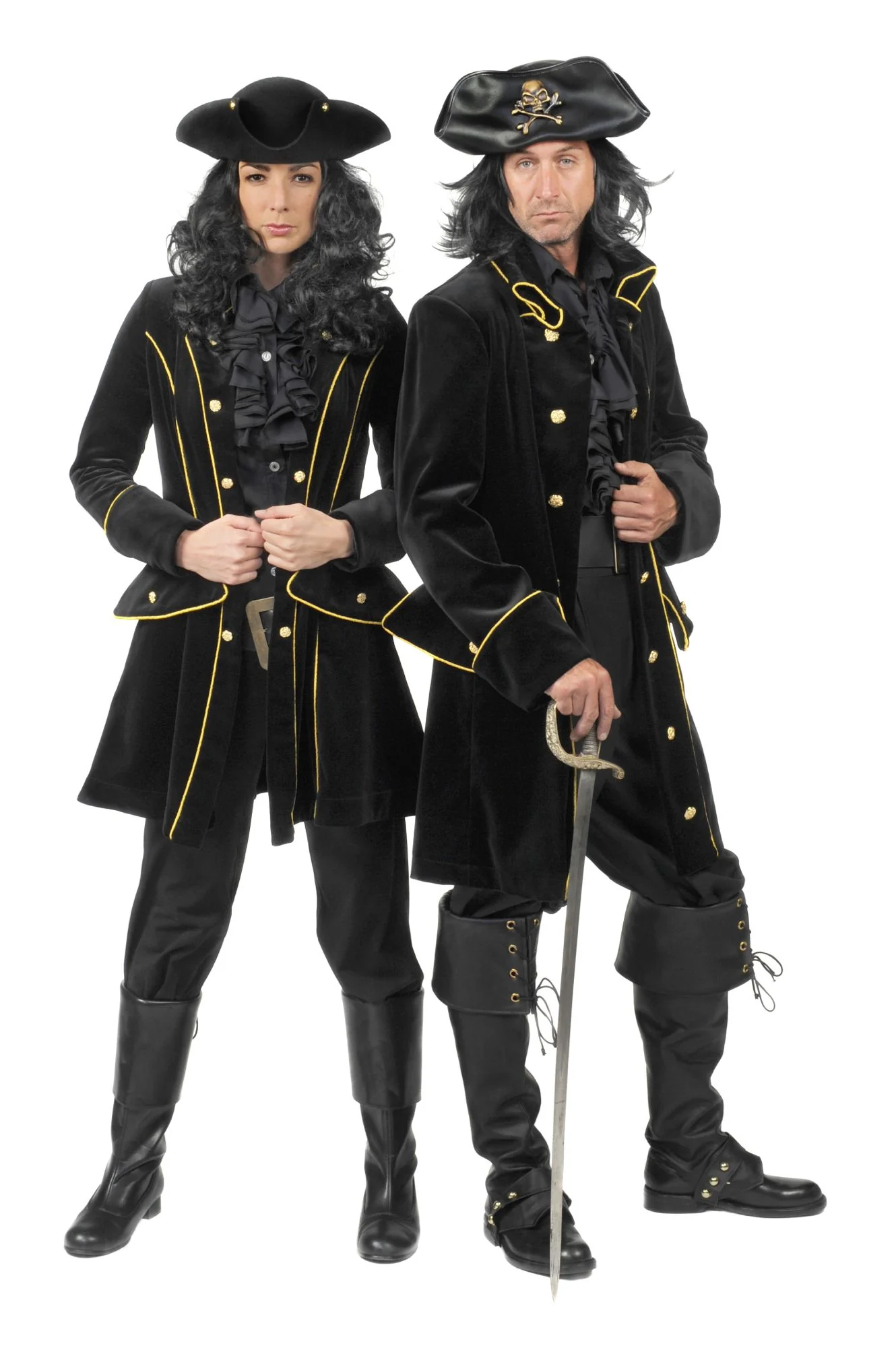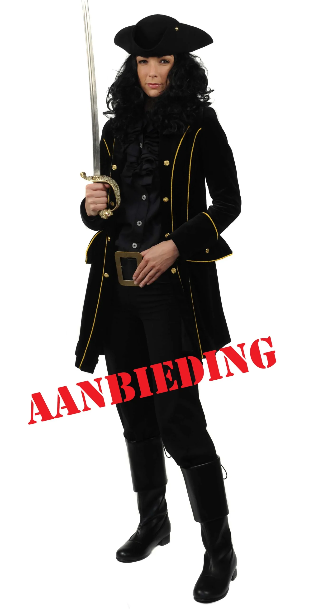 Dames Piratenjas Fluweel, een geweldige piratenjas van 100% katoenfluweel, getailleerd model met zeer fraai, dikke goudgalon en ‘gouden’ knopen, nog enkele modellen op voorraad voor de helft van de prijs OP=OP!
