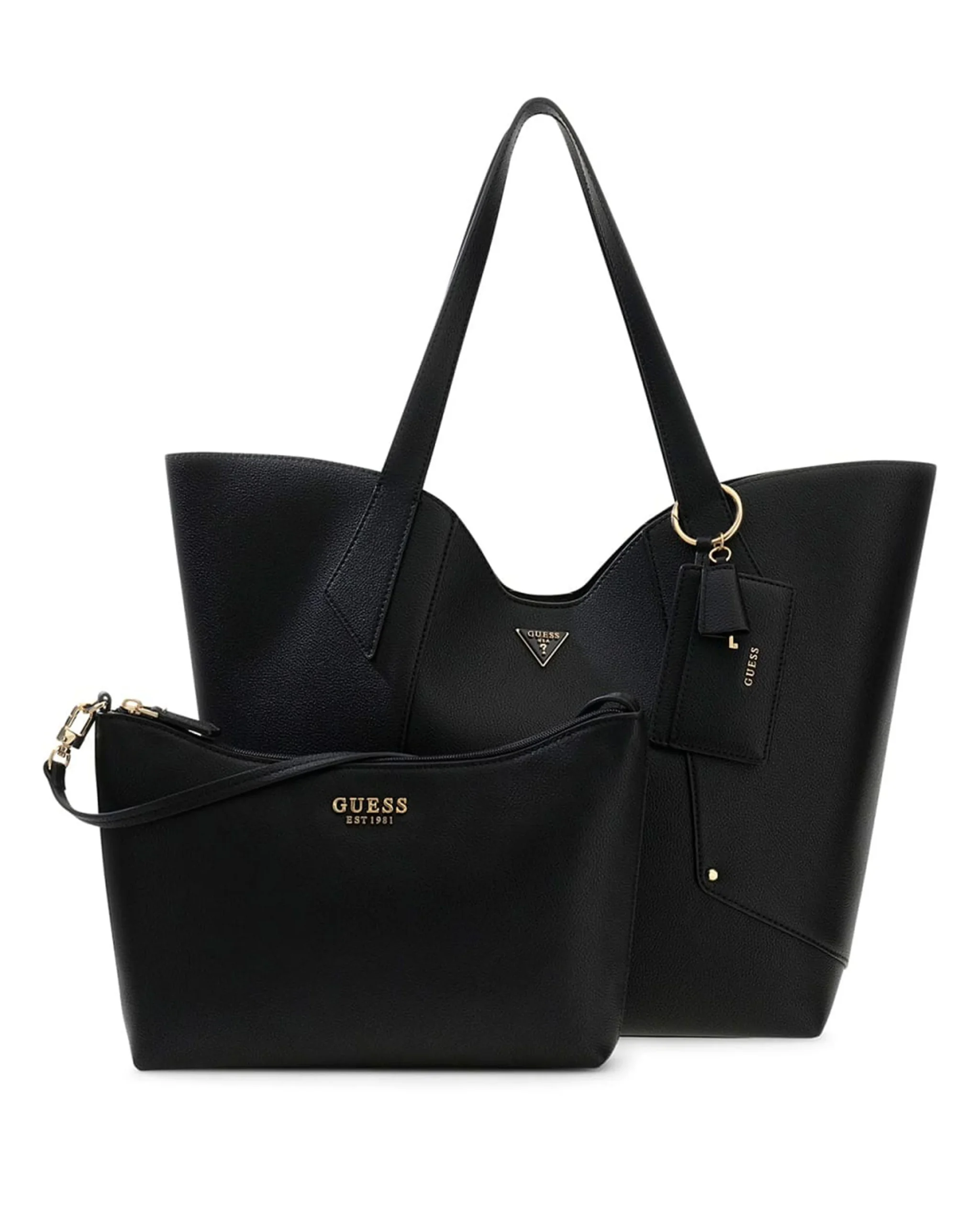 Ontdek de veelzijdigheid van de _Darcy Large 2 In 1 Tote Tas_ van het iconische merk Guess. Deze elegante _schoudertas_ combineert stijl met functionaliteit, perfect voor elke gelegenheid. De ruime binnenkant biedt voldoende plek voor al je dagelijkse benodigdheden, terwijl het strakke, zwarte ontwerp een tijdloze uitstraling garandeert. Draag hem comfortabel over je schouder of gebruik hem als handtas dankzij de veelzijdige handvatten.