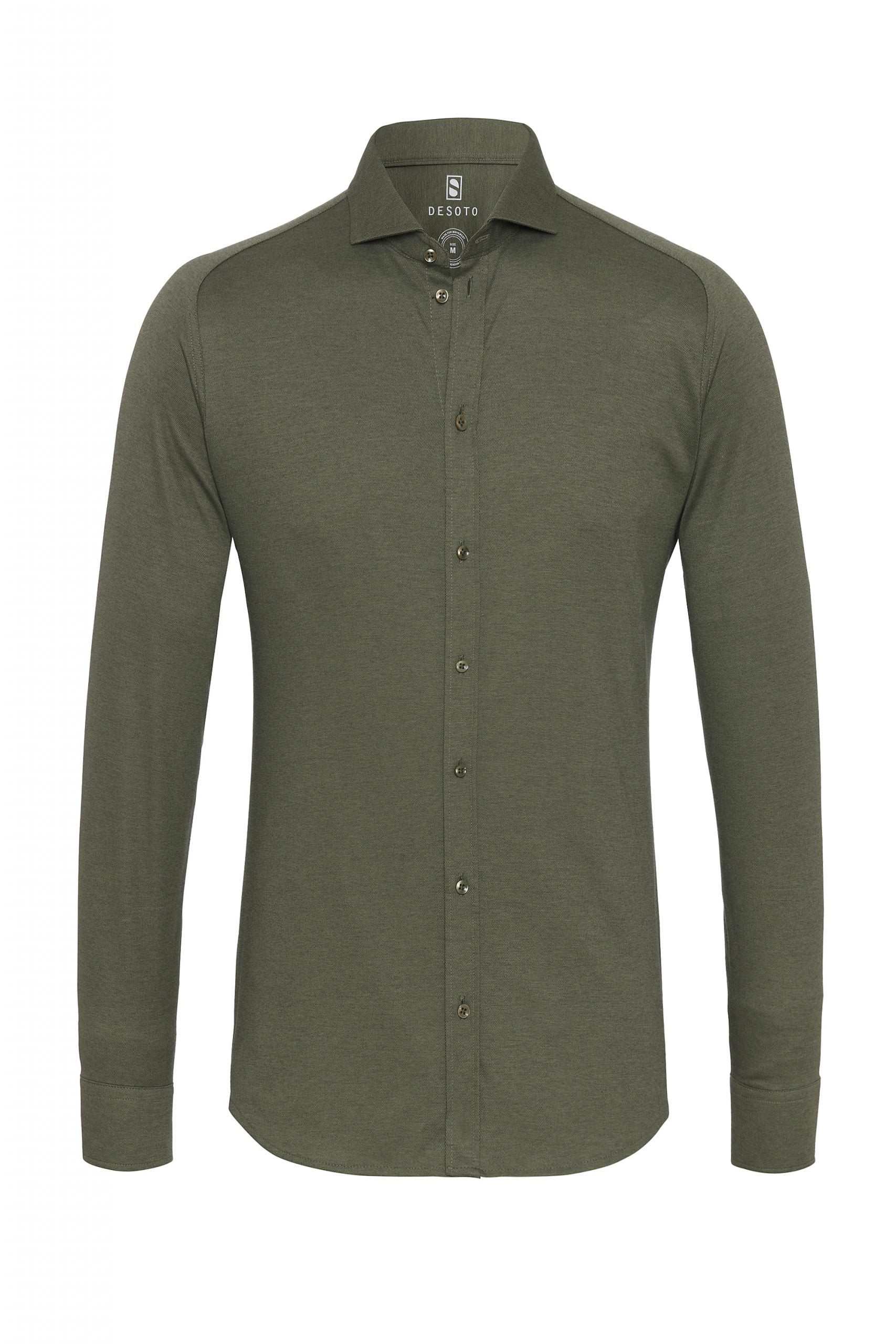 Dit Desoto overhemd is van 100% katoen en bevat een jersey weving. De jersey weving zorgt ervoor dat het overhemd een flexibele en zachte afwerking krijgt. Daarnaast heeft het overhemd een slim fit pasvorm, wat inhoudt dat het overhemd sterk getailleerd is.