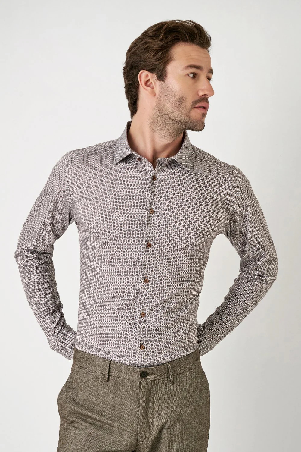 Dit Desoto overhemd in slim fit is uitgevoerd in een klassiek witte kleur met subtiele bruine details. Het overhemd is gemaakt van hoogwaardig materiaal en heeft een moderne pasvorm. Perfect voor een stijlvolle en verzorgde look.