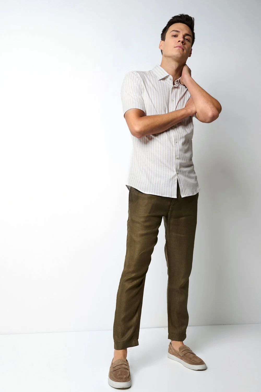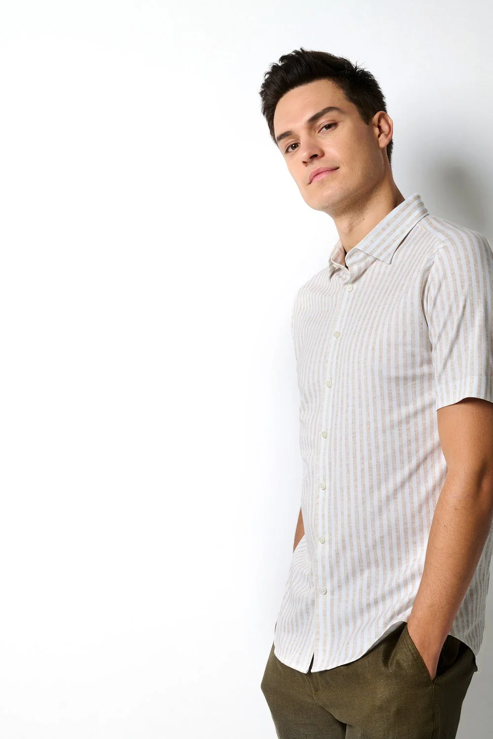 Dit stijlvolle Desoto overhemd in de kleur beige is voorzien van een subtiele strepen. Gemaakt van hoogwaardig materiaal en met een perfecte pasvorm, is dit overhemd ideaal voor zowel formele als informele gelegenheden. Met zijn tijdloze uitstraling en comfortabele draagbaarheid is dit overhemd een must-have voor elke garderobe.