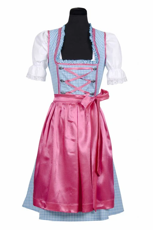 Tiroler jurk in zacht blauw met roze, zeer fraai uitgevoerd en van zeer degelijke kwaliteit. Deze jurk wordt geleverd met de dirndl blouse en is tevens inclusief het dirndl schort. Met deze knie-lange jurk ben je in één keer klaar voor het feest. De luxe outfit is helemaal compleet te maken met tasje, trachten kousen of stay-up kousen en een hals sieraad. Deze luxe jurk is in verschillende kleur variaties leverbaar. Prijs-kwaliteit van deze jurk is uitstekend!