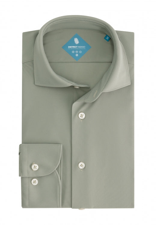 DISTRICT INDIGO SHIRT MET LANGE MOUWEN PISTACHE KLEUR
