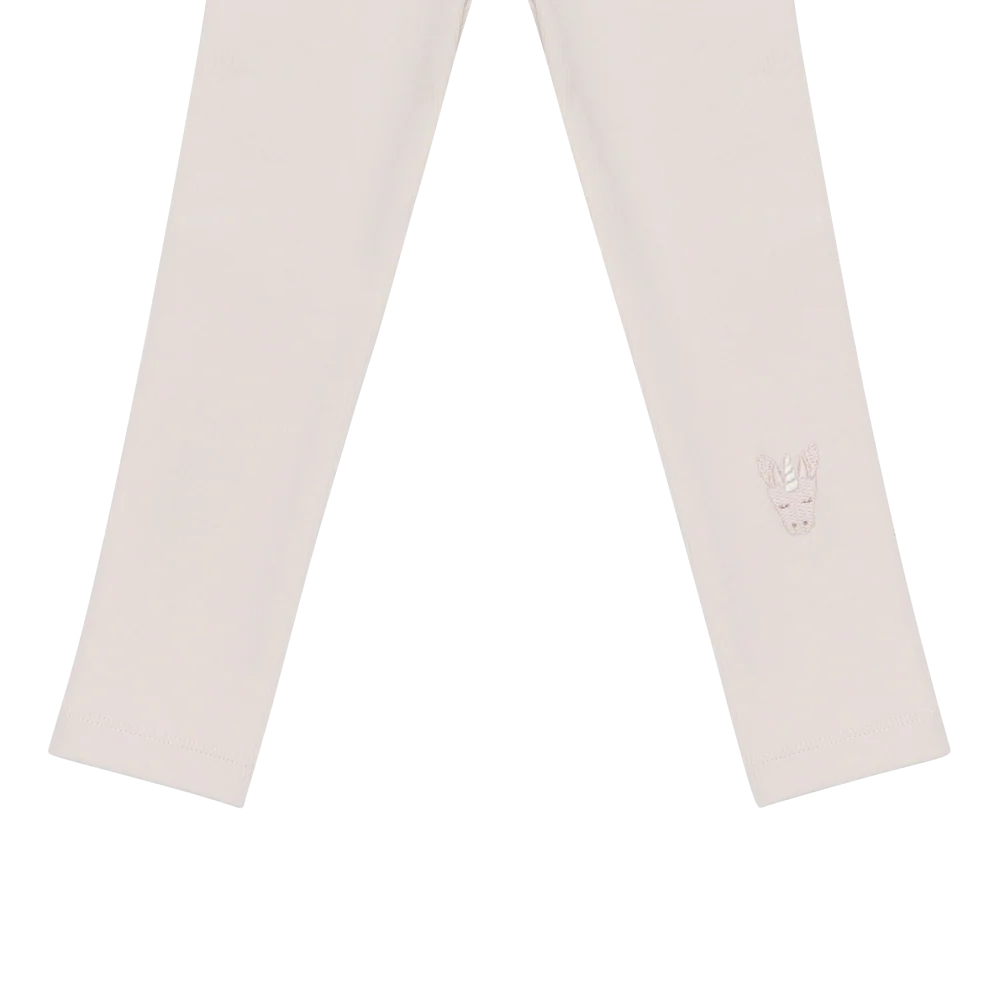 Een bijzonder detail van deze leggings is het subtiele unicorn-design, dat zorgt voor een vrolijke en magische uitstraling. De zachte Soft Powder-kleur geeft een rustige en lieve look die makkelijk te combineren is met andere kledingstukken. Dit maakt de leggings zowel speels als stijlvol, ideaal voor kinderen die houden van een fantasierijke touch in hun outfit.