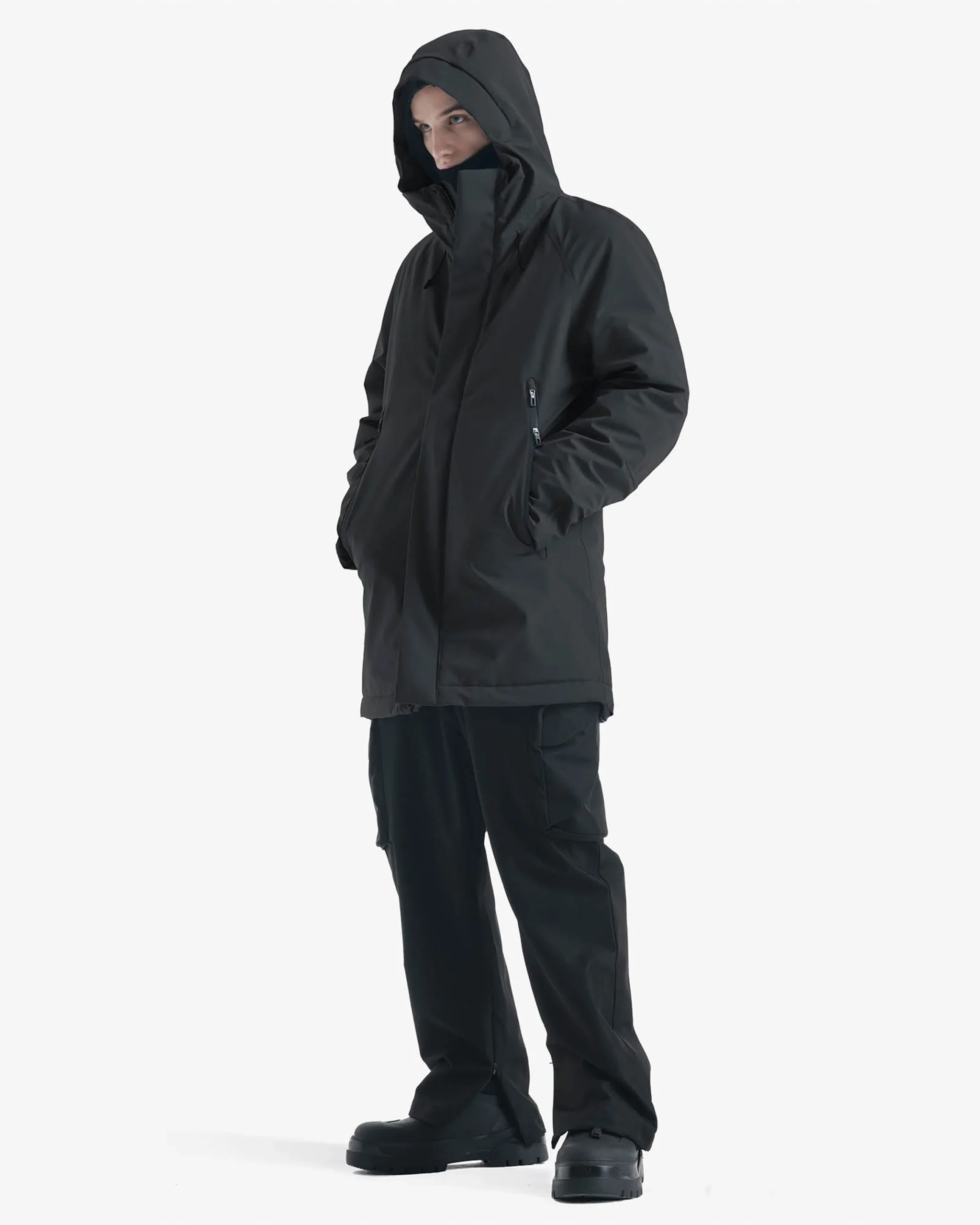 Het strakke design en de zwarte kleur maken deze jas een veelzijdige toevoeging aan je garderobe. Dankzij het hoogwaardige polyester materiaal is de jas niet alleen waterdicht, maar ook ademend, wat zorgt voor een comfortabel draaggevoel. Deze jas is ideaal voor de modebewuste man die geen compromis wil sluiten tussen stijl en prestatie.