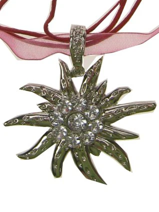 Edelweiss ketting aan koord, grote edelweiss aan rood koord