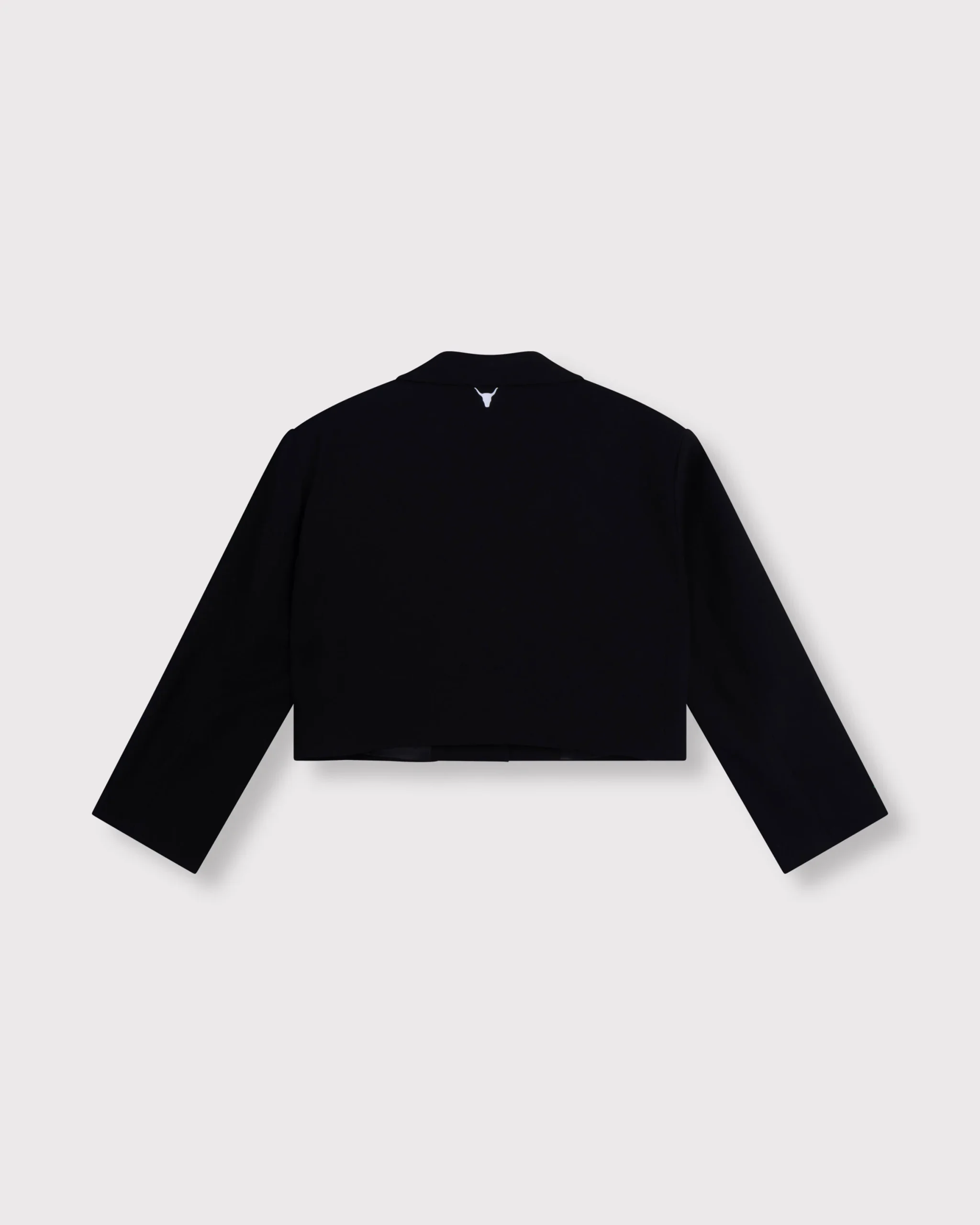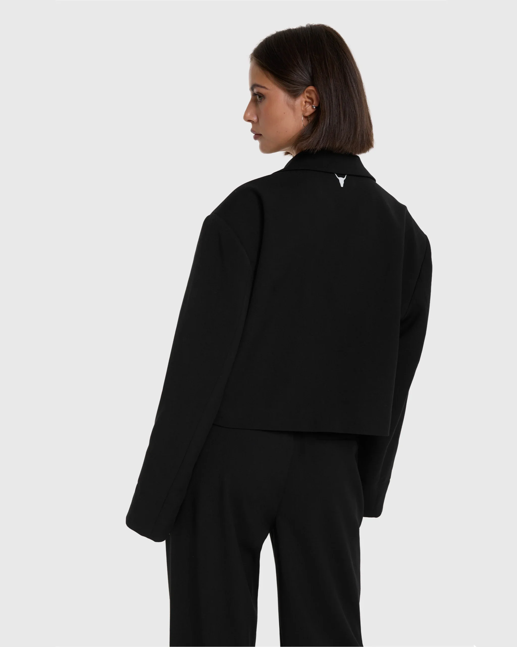 Voeg een opvallend stuk toe aan je garderobe met de Flowy Cropped Blazer, Black. Deze blazer, ontworpen door de rebels trendy makers van _Alix the Label_, is perfect voor de eigenzinnige vrouw die durft op te vallen.