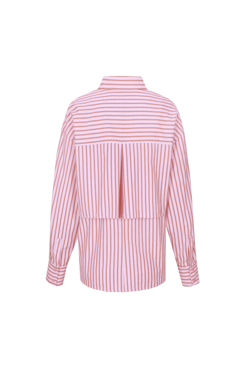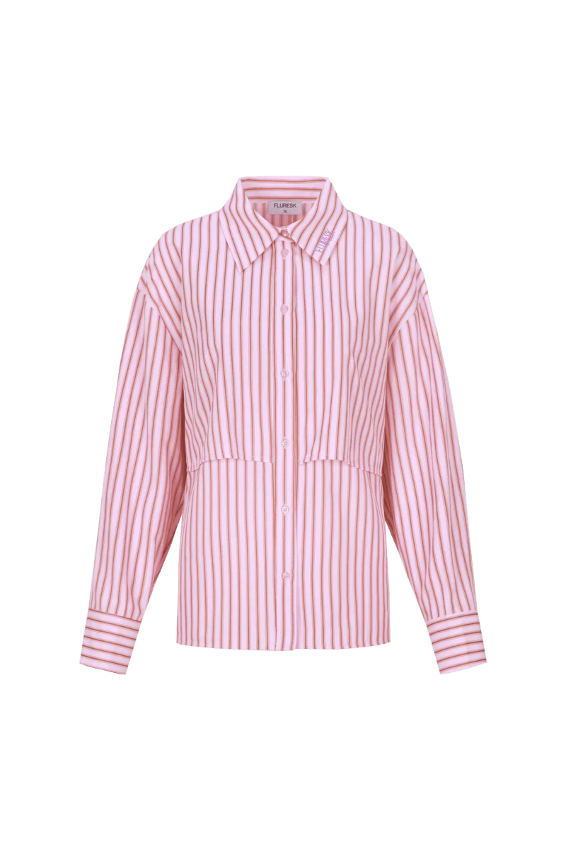 Roze + bruin + de fit van deze blouse = toch echt de perfecte combi?? De Kia blouse van Fluresk is een prachtige roze met bruin gestreepte blouse. Deze dames blouse heeft een speelse fit en ‘Fluresk” in het paars geborduurd op de kraag.