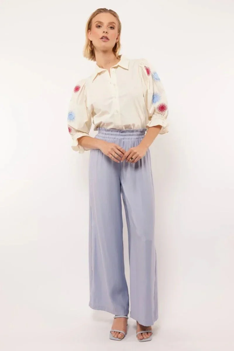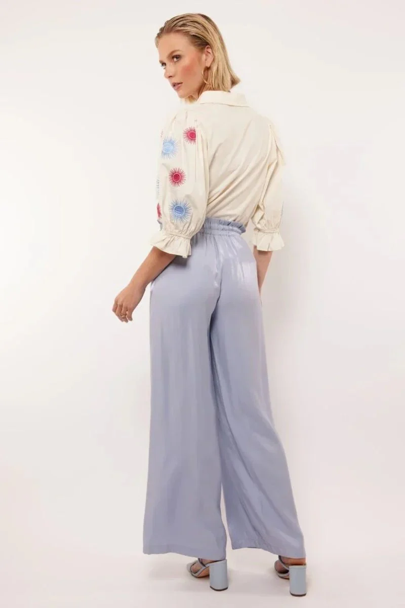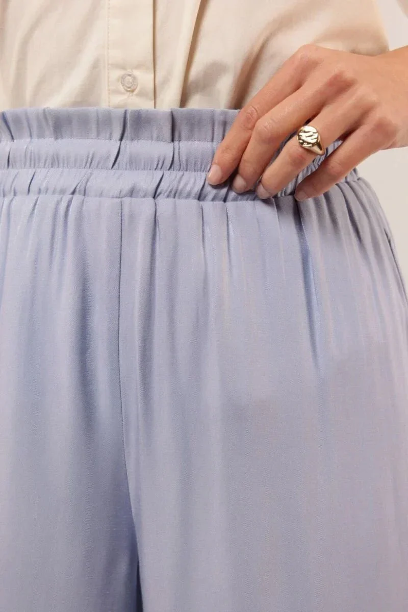 Breng stijl en comfort samen met deze broek van Fluresk. Deze prachtige lichtblauwe broek heeft een wijde pasvorm en een subtiele glans, waardoor hij perfect is voor zowel casual als chique outfits. Of je nu op zoek bent naar een elegante kantooroutfit, een trendy look voor een avondje uit, of een comfortabele maar stijlvolle broek voor overdag, de Loretta Pants biedt het allemaal.