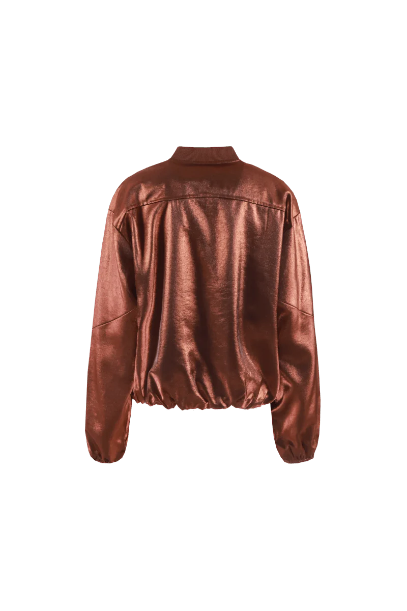 Het Thirza jacket van Fluresk is een echte essential in jouw garderobe! Het is het perfecte stijlvolle jasje om je outfit te layeren (in stijl)! Dit amazing bomber jacket is gemaakt van een prachtige bruint/koper glimmende stof, heeft een pofmouw en een ritssluiting aan de voorkant.