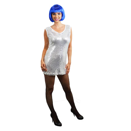 Glitter Jurk Zilver met pailletten voor een super Disco- of Hollywood effect, makkelijk te dragen jurkje, schitterend te combineren met de zilver pailletten legging