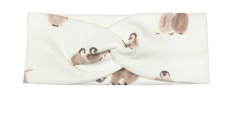 Getwiste haarband in leuke pinguïn print. Draag deze haarband in combinatie met een jumpsuit, jurkje of broekje van dezelfde of bijpassende print/kleur om de look van je kleintje helemaal af te maken!