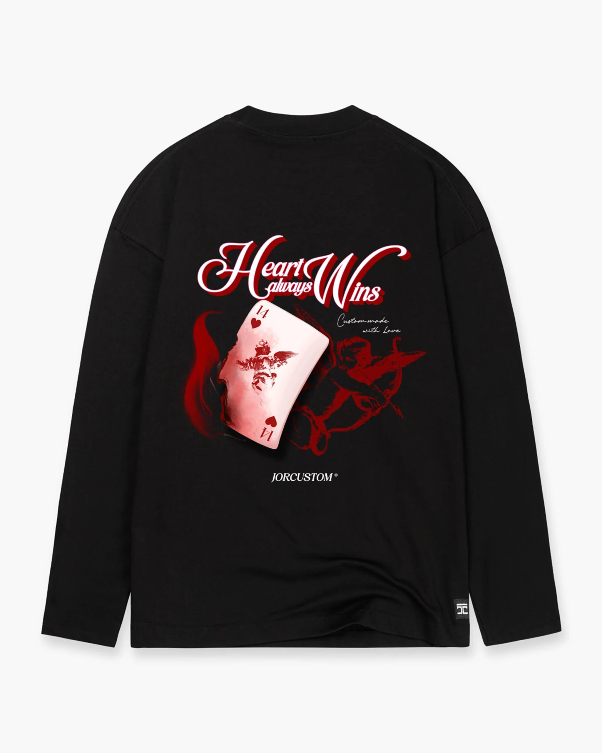 Geef je garderobe een boost met de stijlvolle Heart Always Wins Longsleeve van het stoere merk JorCustom. Dit opvallende T-shirt met lange mouwen is perfect voor mannen die houden van een nonchalante maar trendy look. De heldere, gedurfde print maakt een sterk statement, terwijl de zwarte kleur een tijdloze touch toevoegt aan jouw dagelijkse outfit.