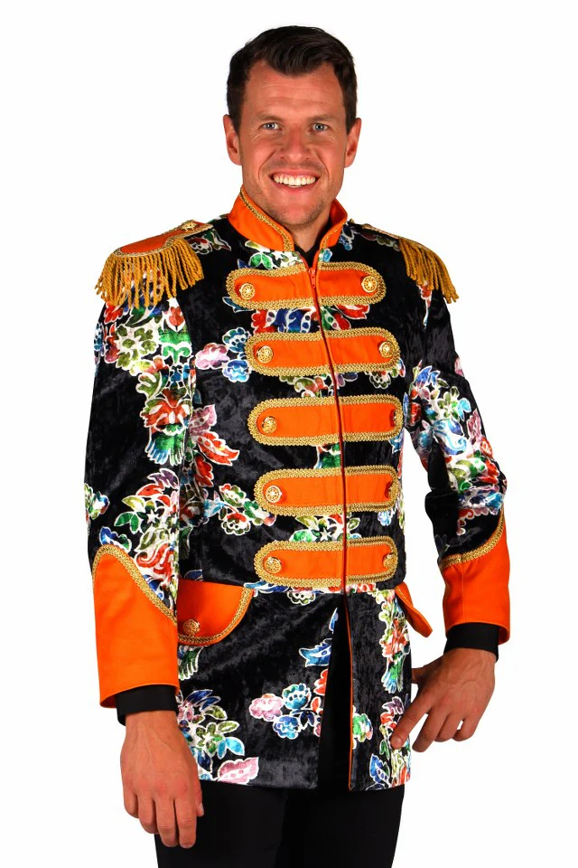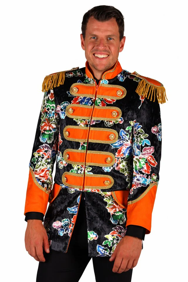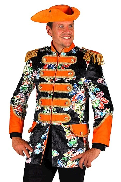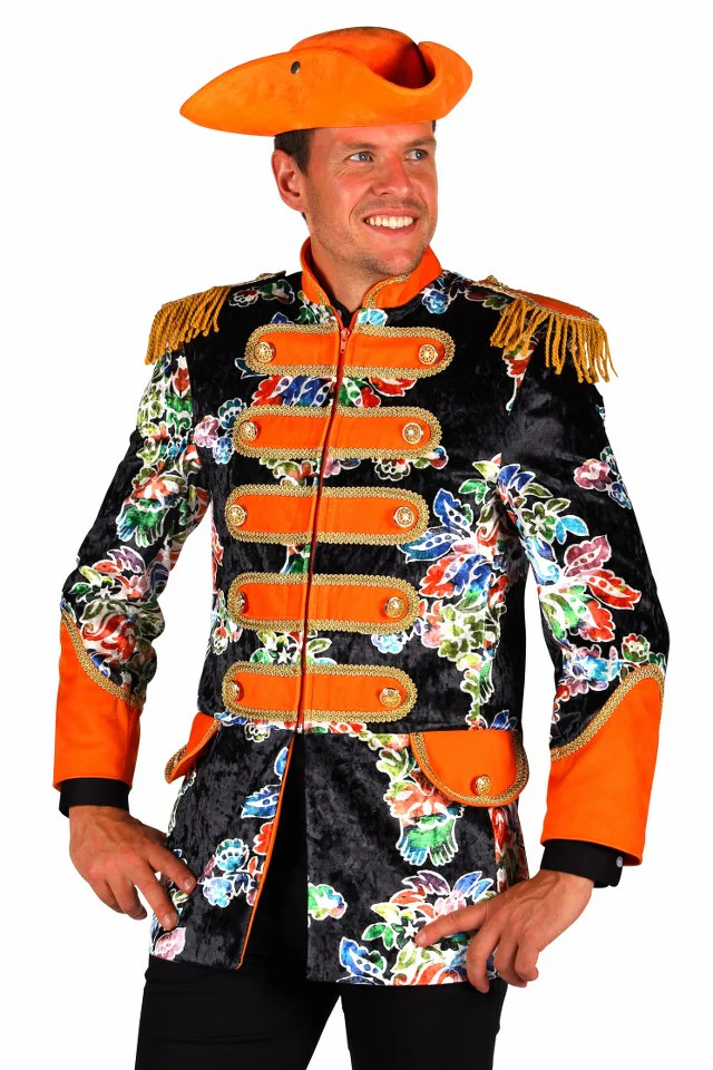 De geweldige heren carnavalsjas Fiesta met oranje accenten is een nieuwe topper in ons assortiment. Een zeer luxe jas met een mooie uitstraling, erg fraai afgewerkt met luxe knopen en goudband. Deze jas is er ook voor dames in een wat langer model.