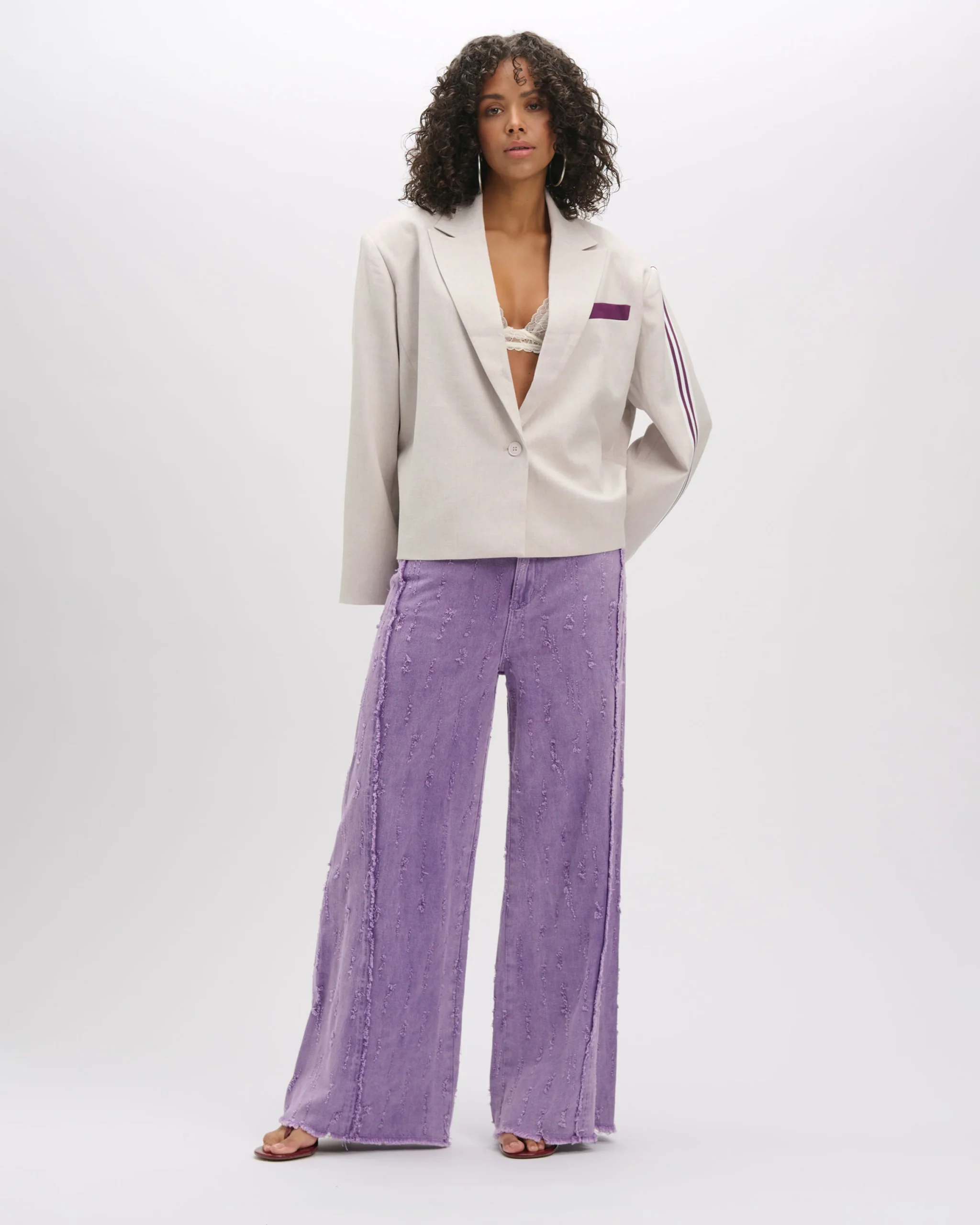 High Waist Damaged Dain Jeans, Purple