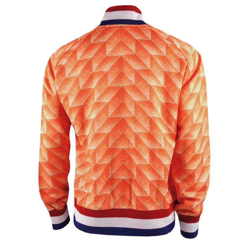 Holland EK 88 jack, uitgevoerd in de kleuren van het tijdens EK’88 gewonnen EK. Oranje met rood-wit-blauwe biezen. Deze jacks zijn met EK 88 print zonder de opdruk. Het legendarische jack waarmee het Nederlands elftal het EK in Duisland wist te winnen