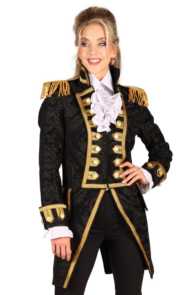 Deze prachtige Jas Nelson brocaat is gemaakt van hoogwaardig materiaal en straalt pure luxe uit. Met een perfecte pasvorm en een ritssluiting is deze carnavalsjas niet alleen mooi, maar ook praktisch. De fraaie afwerking en echte steekzakken zorgen voor een chique uitstraling die je nergens anders zult vinden. Voeg daar nog de epauletten op de mouwen aan toe en je hebt een jas die echt opvalt.