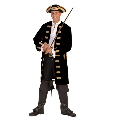 Piratenjas, luxe uitvoering, lang model, prima afwerking met goudband en knopen