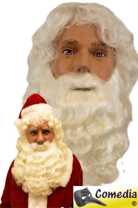 Kerstmanbaard Kanakelon van zacht haar met natuurlijke uitstraling en losse snor. De losse snor kan worden gelijmd met baardlijm. Wenkbrauwen zijn los bij te bestellen. De set bestaat uit de baard, pruik en losse snor