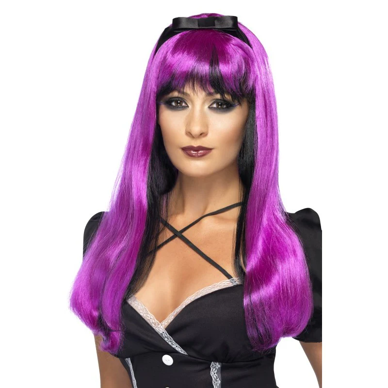 Lange pruik met roze lang haar over het zwarte haar, zeer fraai model, tijdelijk afgeprijsd OP=OP