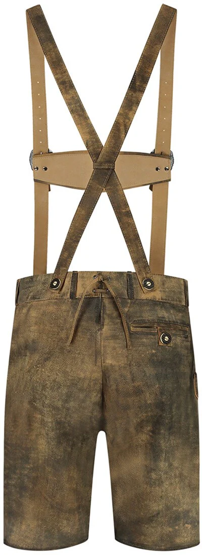 De broek heeft geweldige, traditionele stiksels en heeft een soort vintage uitstraling. Verder is deze lederhose uitgerust met traditionele H-Trager (bretels) en heeft steekzakken om je spullen in te bewaren tijdens het oktoberfeest. Tevens is de broek uitgerust met achterzak en een touwtje (koord) aan de achterzijde.
