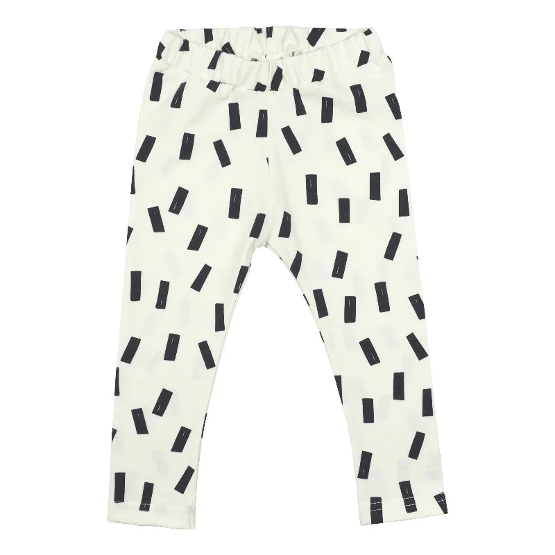 Fijne legging van zeer zacht katoen in de kleur creme met een zwarte confetti print.