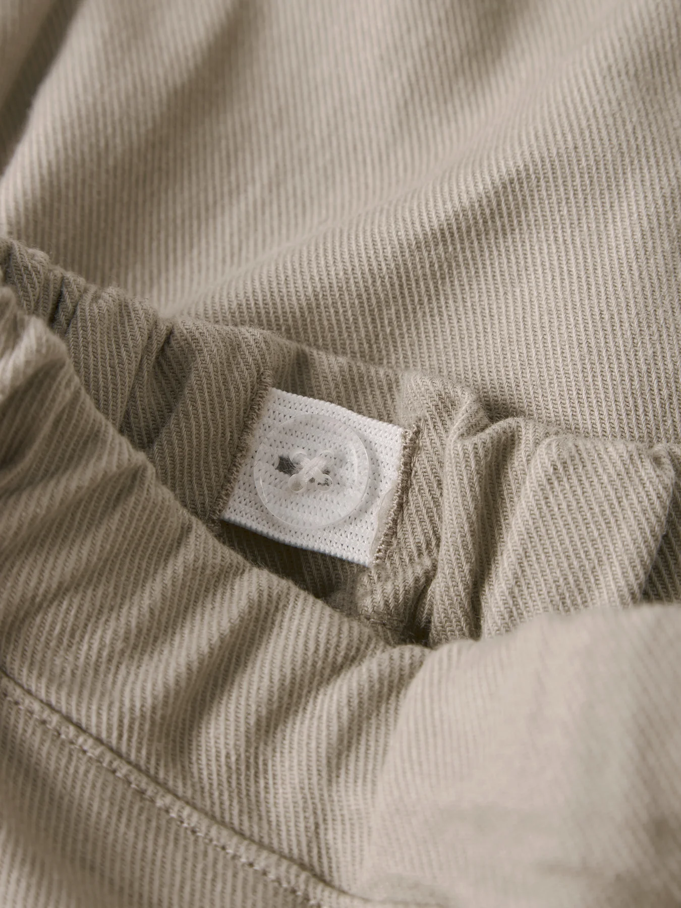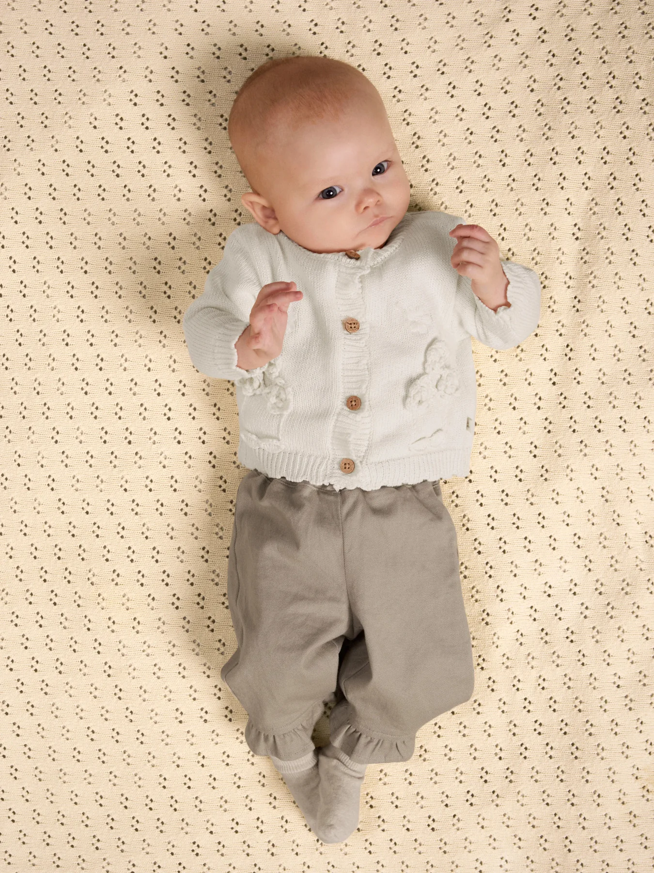 De twillstructuur herken je aan de fijne diagonale weving. Dit maakt de broek stevig, duurzaam én heerlijk zacht voor de gevoelige babyhuid. Dankzij de lichte stretch beweegt de stof soepel mee.