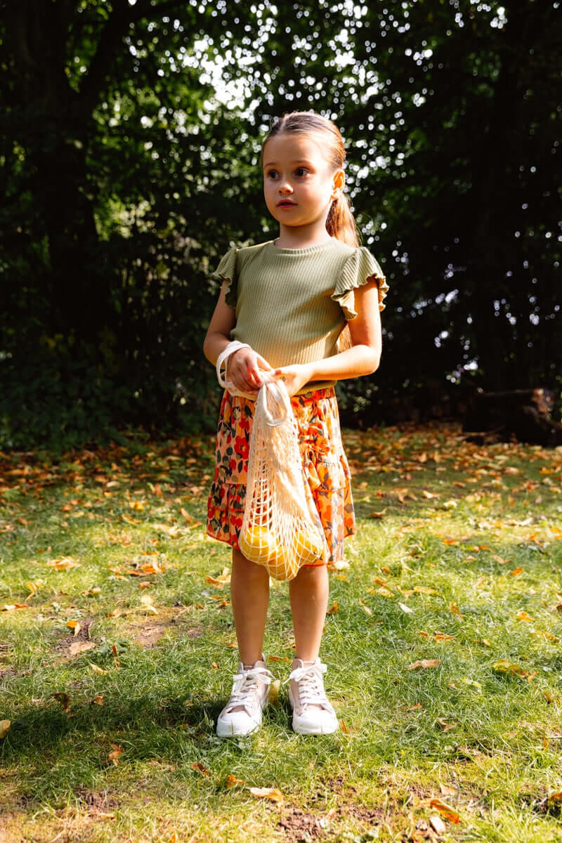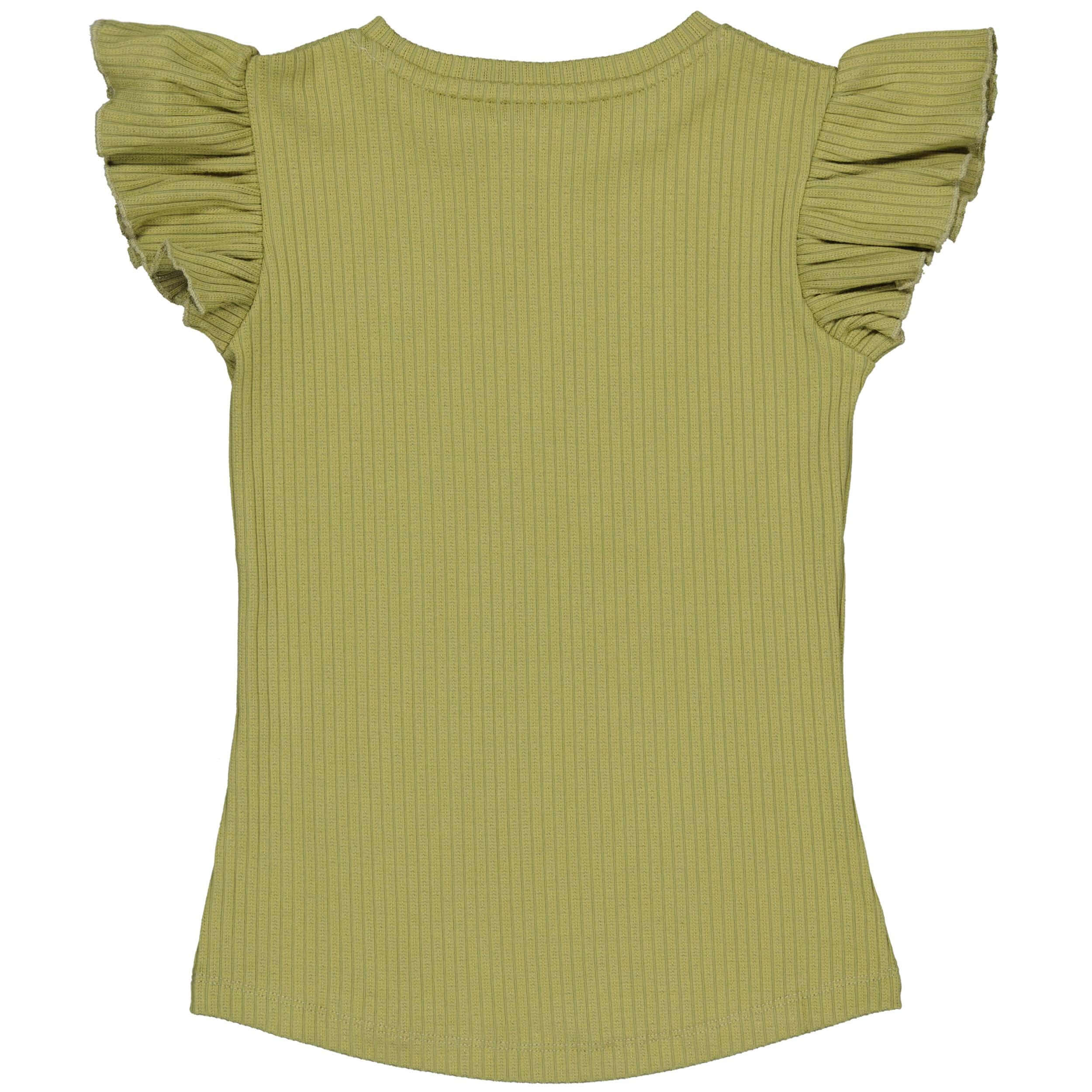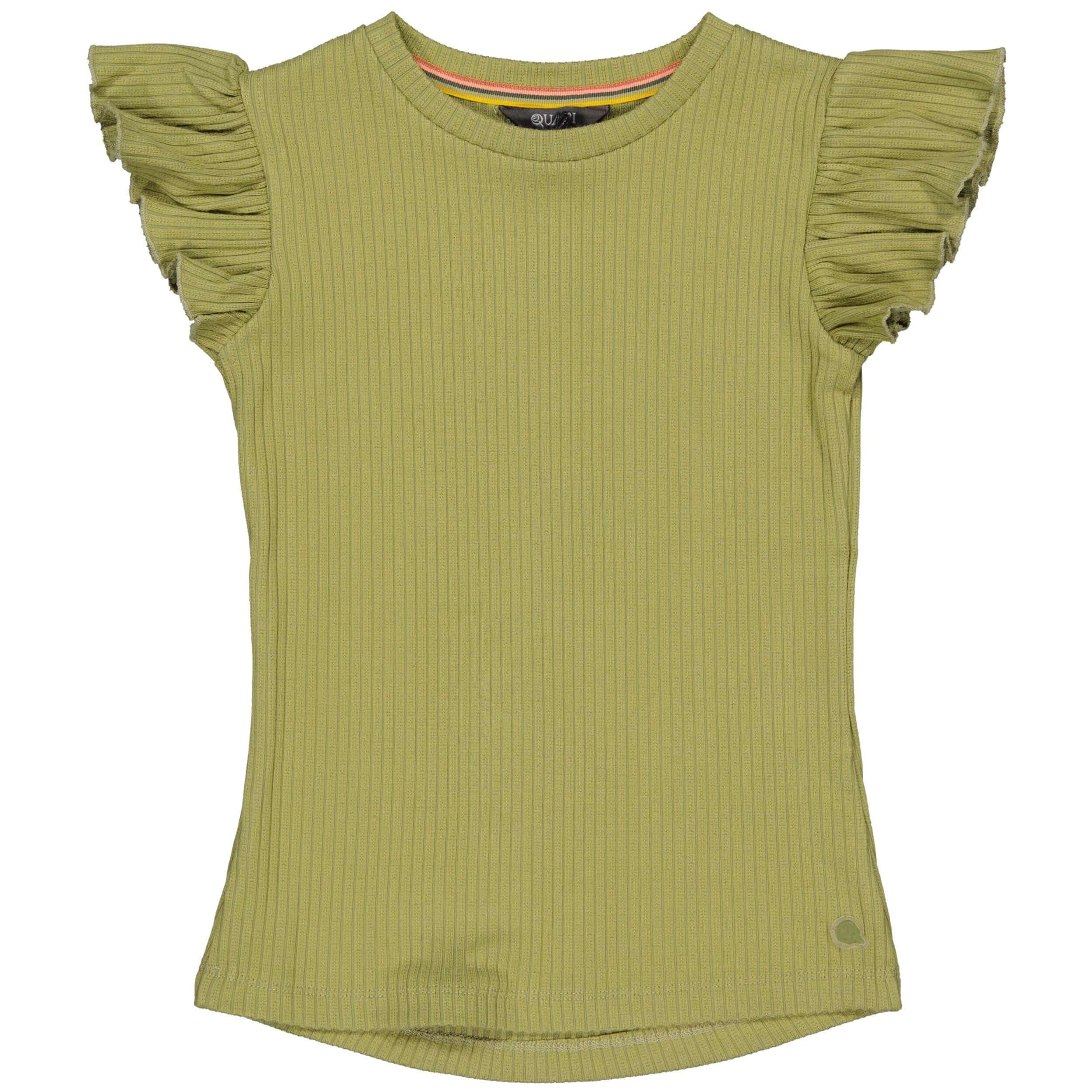 Geweldig T-shirt met ruches op de armen van Quapi Kidswear. De kleur spreekt voor zich, fris groen voor warme dagen. Geweldig te combineren met bijvoorbeeld een witte short.
