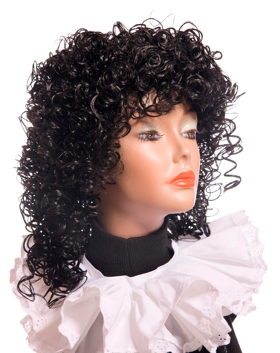 Zwarte meisjespruik met krullen en een wat langer model. De pruik is verstelbaar en uitwasbaar, de meisjespruik heeft een wetlook-uiterlijk, is lucht-doorlatend en heeft een prachtige look! Je kunt deze prui ook helemaal zelf opmaken met strikjes of staartjes. Uiteraard is de pruik ook te gebruiken voor mannen pieten met langer haar