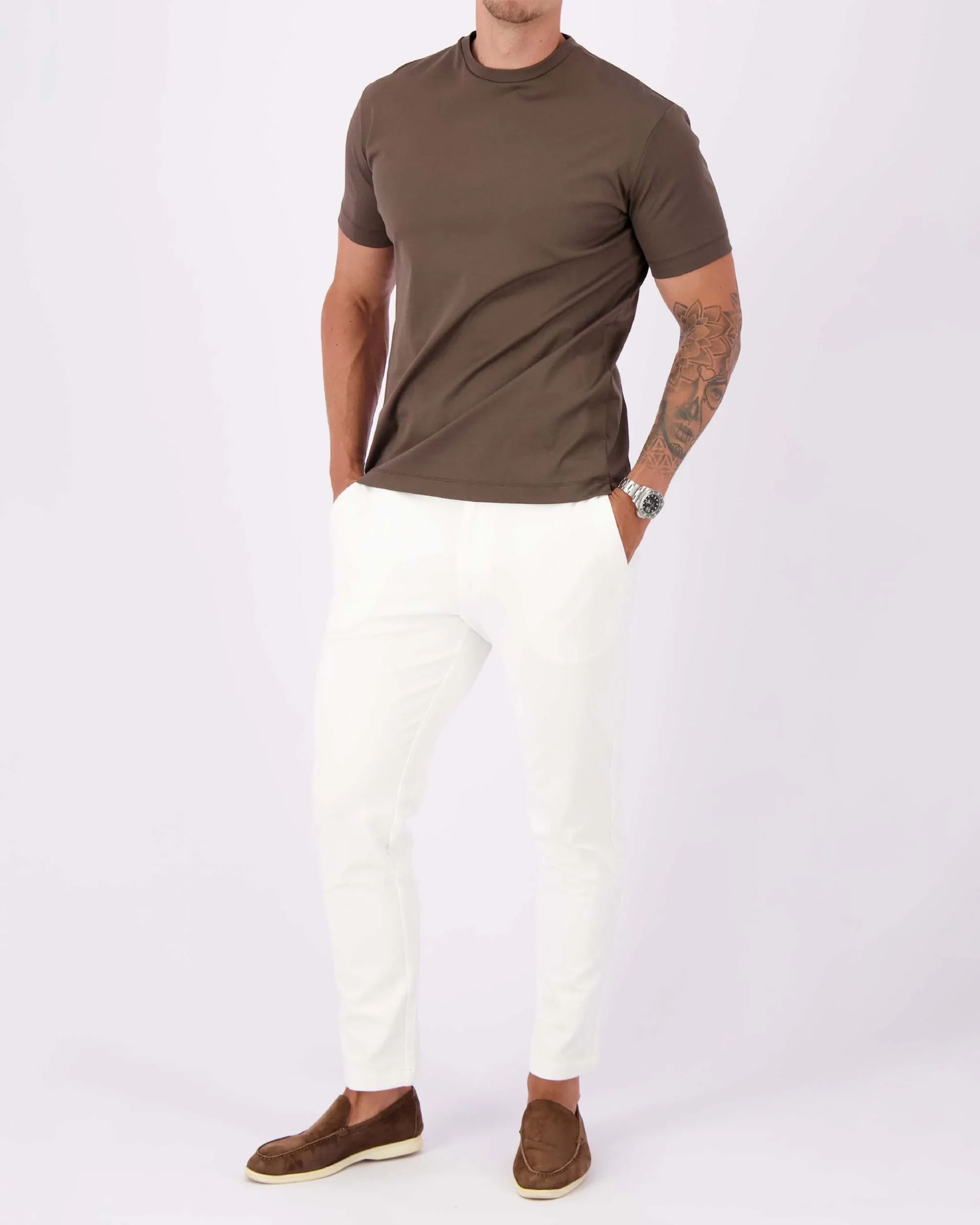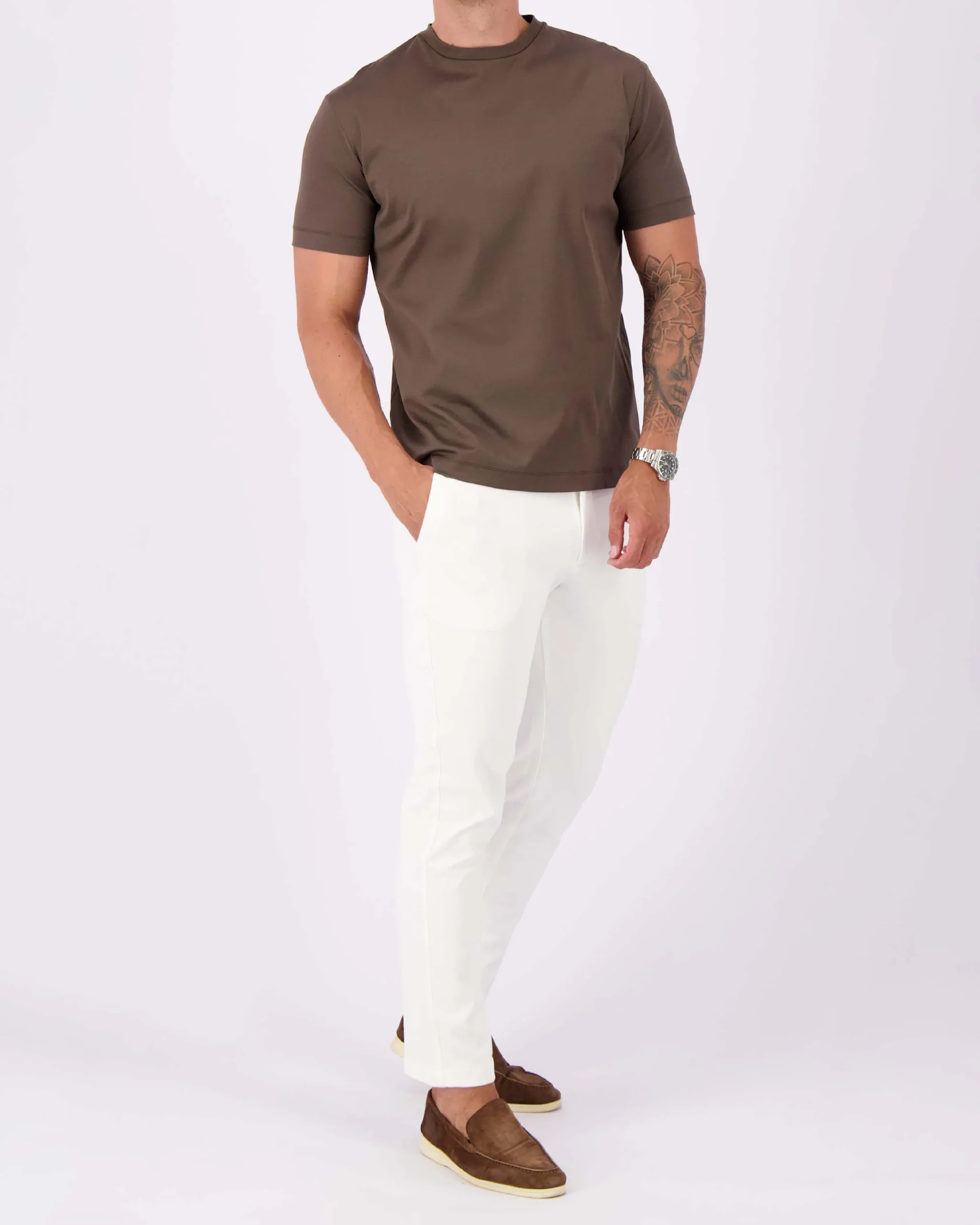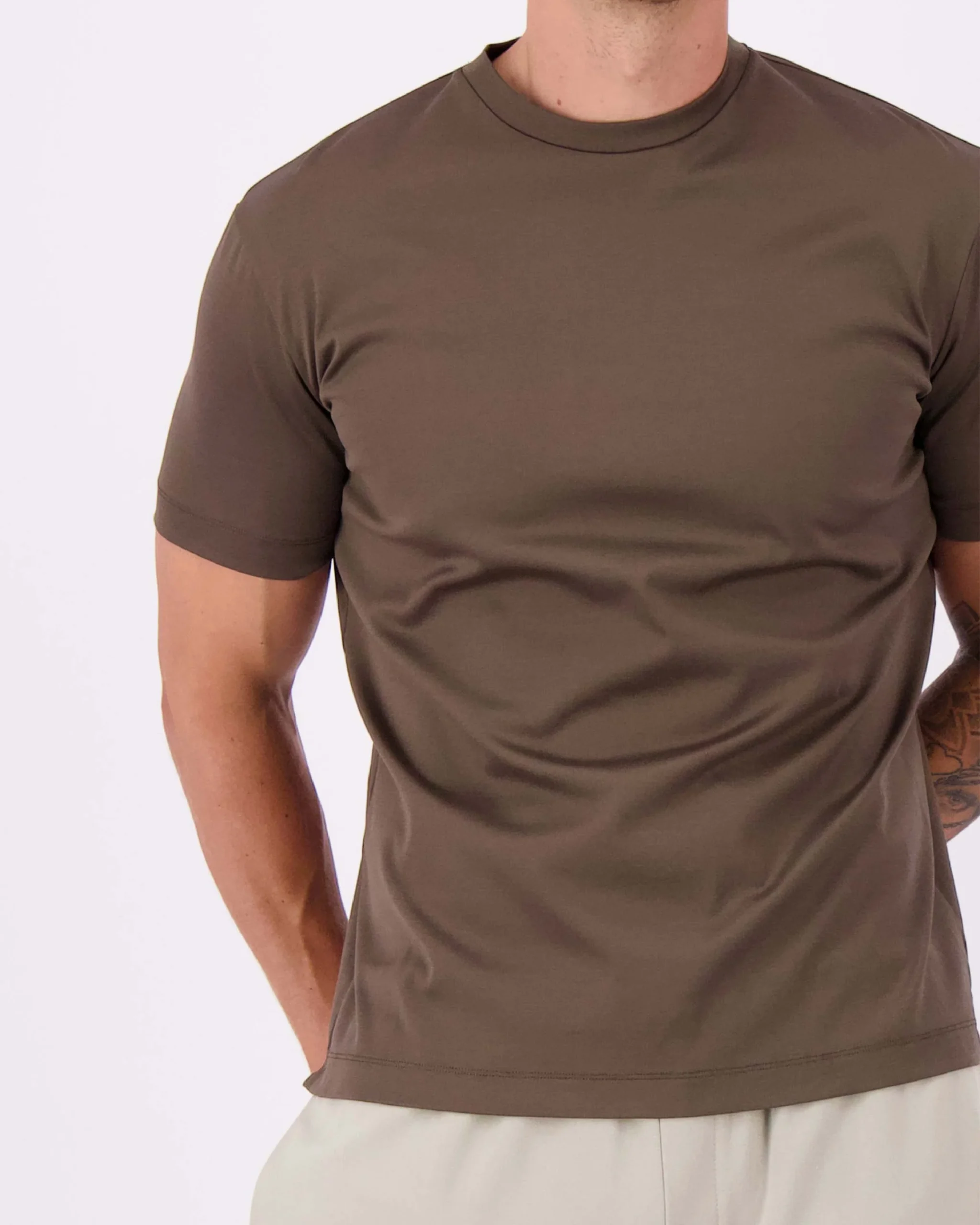 Ervaar zelf het comfort en de luxe van dit *Basic T-shirt* van *Les Brutes*. Het Mercerized Cotton T-Shirt biedt niet alleen een stijlvolle uitstraling, maar ook een subliem draagcomfort dankzij de eersteklas kwaliteit van mercerized katoen. Dit materiaal zorgt voor een zijdezachte glans en een duurzame afwerking, ideaal voor elke man die houdt van casual elegantie. Met een tijdloze groene kleur en een pasvorm die aansluit op elke garderobe, voegt dit *T-shirt* een verfijnde touch toe aan elke outfit.