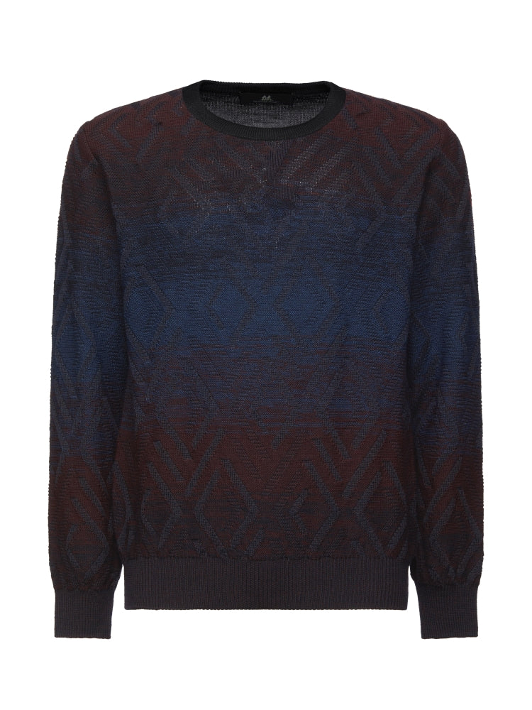 Montechiaro Trui met all-over textuur en gradiënteffecten, Blauw en Rood Overloop in de kleuren.