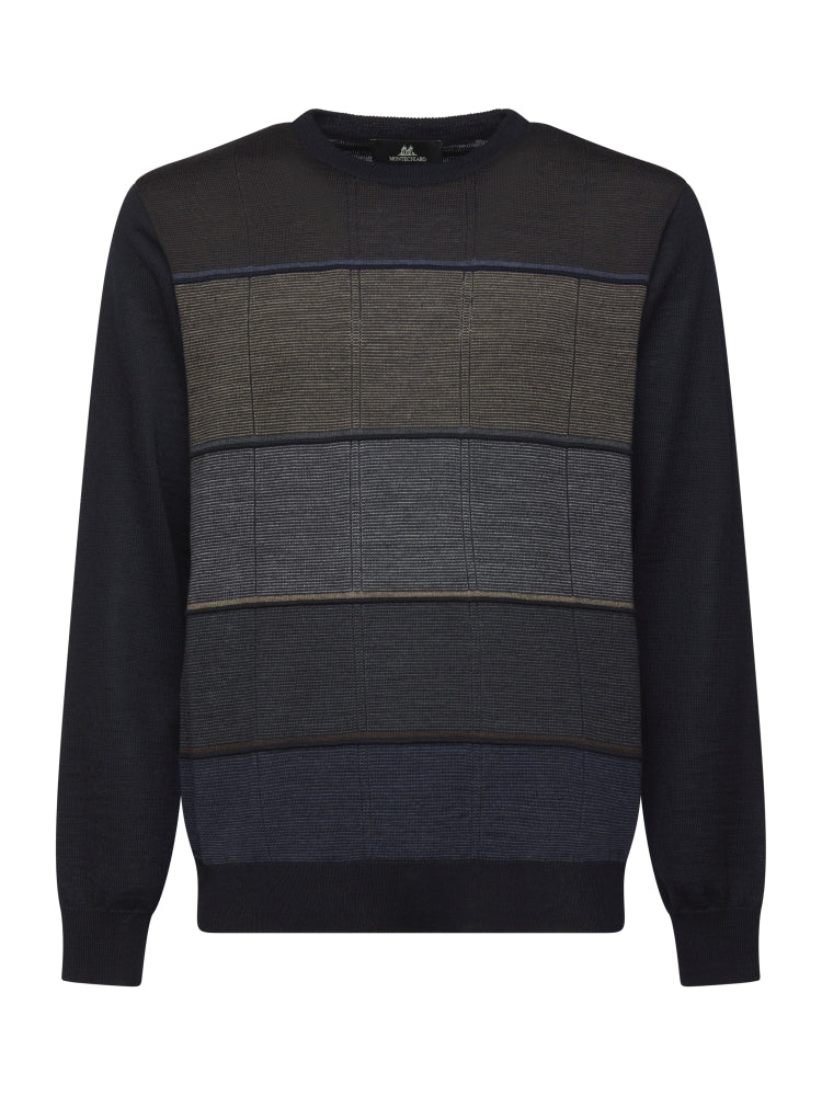 Fancy front box patroon met horizontale verhoogde lijnen en een mooi aansluitende ronde hals.