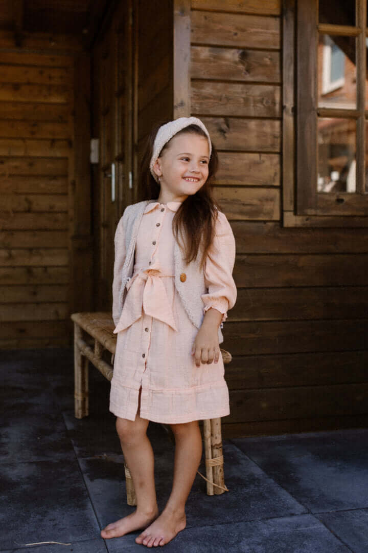 Met deze jurk wordt de verbeelding geprikkeld en voelt men zich direct teruggevoerd naar de tijd van het bestaan van Peter Pan. Op naar Neverland in dit organisch en duurzaam geproduceerde nieuwe lievelingsstuk.