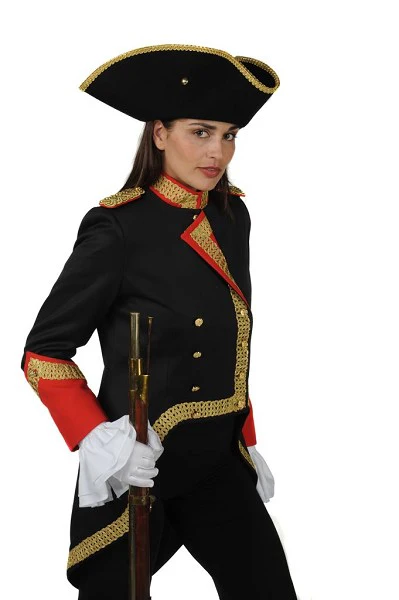 Napoleon jas dame luxe, deze zeer luxe uitgevoerde Napoleon of admiraalsjas is volledig gevoerd en heeft een exclusief karakter. De afwerking en materiaal zijn perfect en overstijgen het standaard carnavals kostuum volledig
