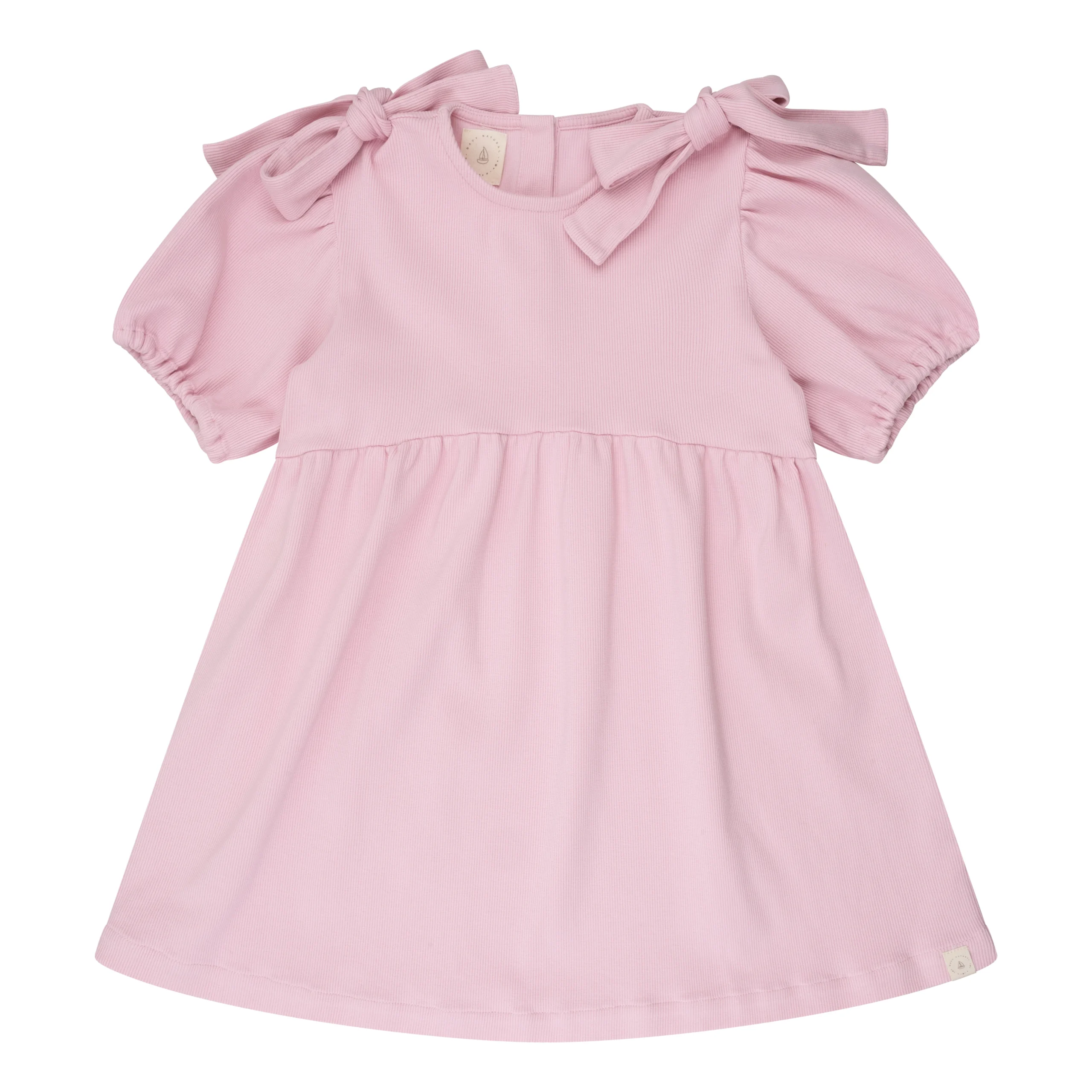 De Navy Natural Fransje Bow Dress Pink Rib is een jurk waar elegantie en speelsheid samenkomen. De zachte roze tint geeft een lieve uitstraling, terwijl de strikdetails op de schouders zorgen voor nét dat beetje extra charme.