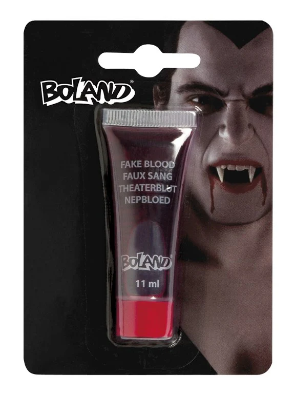 Een tube met bloed, niet echt maar nepbloed uiteraard. Wil je als vampier door het leven of wil je een Halloween feestje met veel bloed of wil je je Halloween outfit verfraaien met wat bloedsporen, dan is deze tube met een zeer natuurlijke bloedkleur iets voor jou, geschikt voor op de huid maar ook te gebruiken om bloedsporen in de kleren te creëren. De tube bevat 11 ml vers bloed