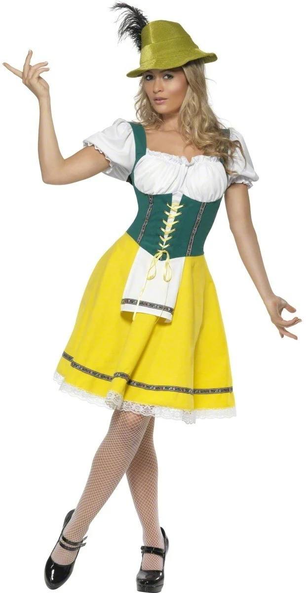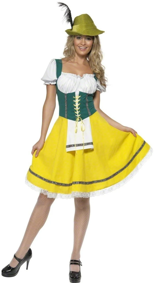 Oktoberfeest Dirndl is een zeer fraaie Tiroler jurk met rits aan de achterzijde en een koordje aan de voorzijde. De blouse zit aan de jurk vast, evenals het schortje. De jurk in maat M is in werkelijkheid een stukje korter dan op de foto en in het filmpje, maat L en XL zijn we vergelijkbaar met de foto.